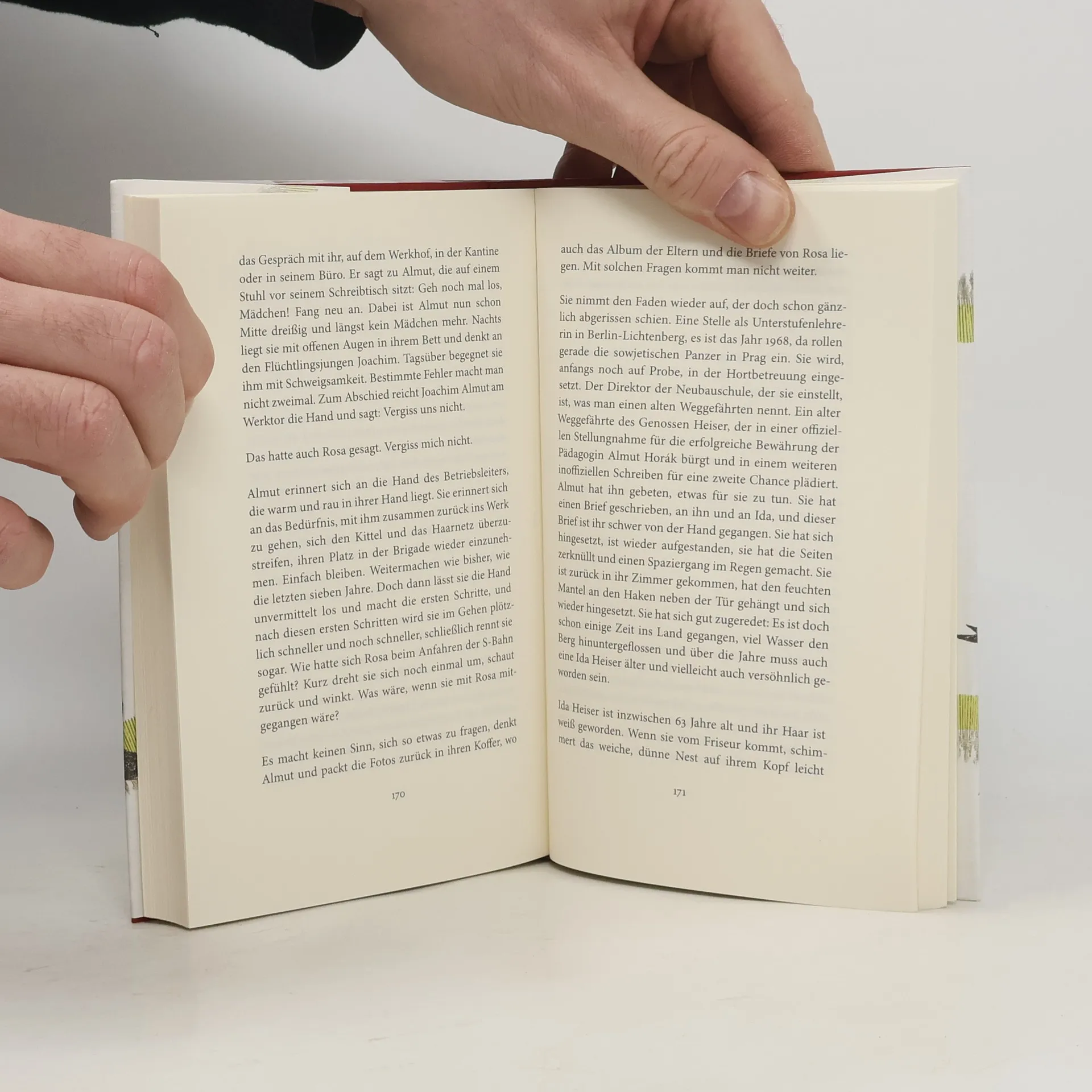Peggy Mädlers Roman erzählt von zwei Freundinnen, Almut und Rosa, die im Böhmen der 1940er Jahre aufwachsen. Nach dem plötzlichen Tod von Almuts Vater und dem Selbstmord ihrer Mutter nimmt Rosas Mutter, eine deutsche Kommunistin, die beiden Mädchen mit nach Brandenburg, wo sie Erfahrungen von Verlust und Entwurzelung teilen. Trotz der Herausforderungen entwickeln sie eine enge Bindung zum neugegründeten Staat und werden Lehrerinnen in Berlin. Doch mit 30 trifft Rosa die Entscheidung für einen Neuanfang und verlässt kurz vor dem Mauerbau nach Westberlin, während Almuts Welt zusammenbricht. Sie ist auf der Suche nach Stabilität in einer sich ständig verändernden Realität. Ein halbes Jahrhundert später hat Almuts Tochter Elli eine beste Freundin, die Dramaturgin Kristine, die sich im Alter um Almut kümmert, während Elli in Basel am Theater arbeitet. Die Erlebnisse und Erinnerungen der beiden Frauen lagern sich wie Sedimente ab, und die Lebenswege der Familien und Generationen verweben sich. Es geht um das Weggehen, Ankommen oder Bleiben und um die Erkenntnis, was im Leben wirklich zählt.