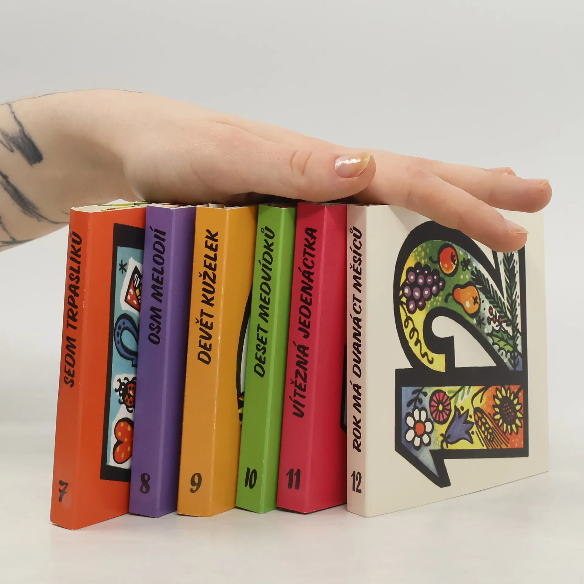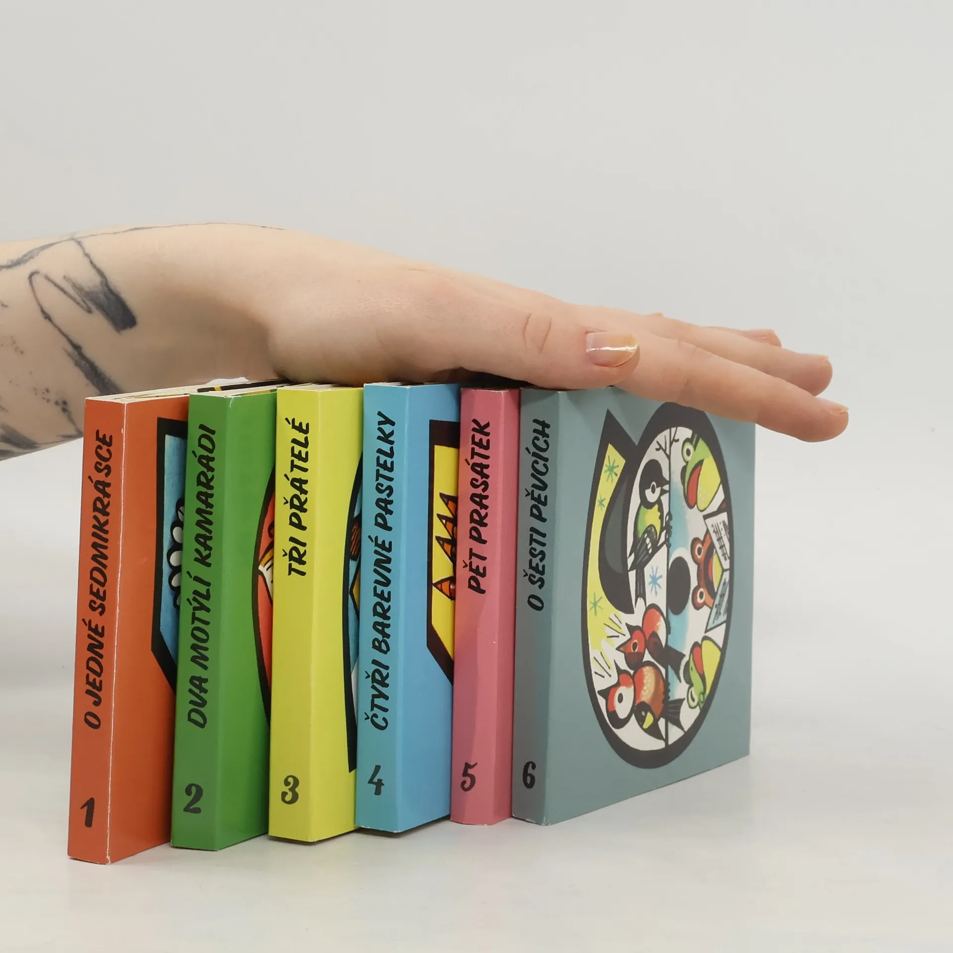 Dva rozhádaní motýlci, čtyři barevné pastelky, početná rodinka pěti prasátek, sedm trpaslíků či devět kuželek a další a další hrdinové krátkých pohádek čekají na malé i velké čtenáře v kouzelném boxu. Kouzelná krabička, chráněná potištěným rukávem, v sobě ukrývá 12 malých knížeček, 12 prostorových leporel, které vykouzlí úsměv na tváři každému dítěti. Knížky se z krabice dají jednoduše vytáhnout a po přečtení vrátit zpět, aby se nezatoulaly a zůstaly pěkně pohromadě. Nakladatelská anotace.