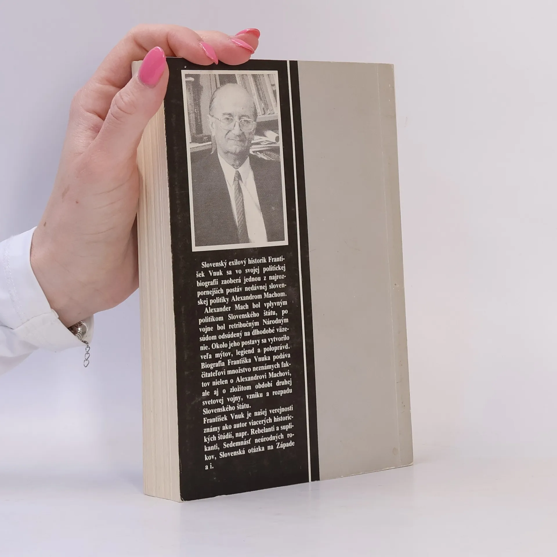 Kniha zaoberajúca sa Alexandrom Machom, slovenským politikom pôsobiacim počas obdobia Slovenského štátu, ktorý bol spoluzodpovedaný za perzekúciu slovenských židov i protifašistického hnutia. "Biografia Františka Vnuka podáva čitateľovi množstvo neznámych faktov nielen o Alexandrovi Machovi, ale aj o zložitom období druhej svetovej vojny, vzniku a rozpadu Slovenského štátu."... celý text