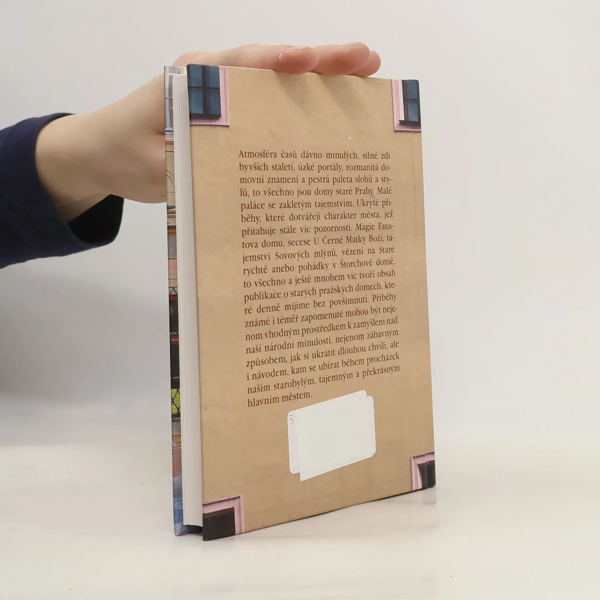 Atmosféra časů dávno minulých, silné zdi byvších staletí, úzké portály, rozmanitá domovní znamení a pestrá paleta slohů a stylů, to všechno jsou domy staré Prahy. Malé paláce se zakletým tajemstvím. Ukryté příběhy, které dotvářejí charakter města, jež přitahuje stále víc pozornosti. Magie Faustova domu, secese U Černé Matky Boží, tajemství Sovových mlýnů, vězení na Staré rychtě anebo pohádky v Štorchově domě, to všechno a ještě mnohem víc tvoří obsah publikace o starých pražských domech, jež denně míjíme bez povšimnutí. Příběhy známé i téměř zapomenuté mohou být nejenom vhodným prostředkem k zamyšlení nad naší národní minulostí, nejenom zábavným způsobem, jak si ukrátit dlouhou chvíli, ale i návodem, kam se ubírat během procházek naším starobylým, tajemným a překrásným hlavním městem.