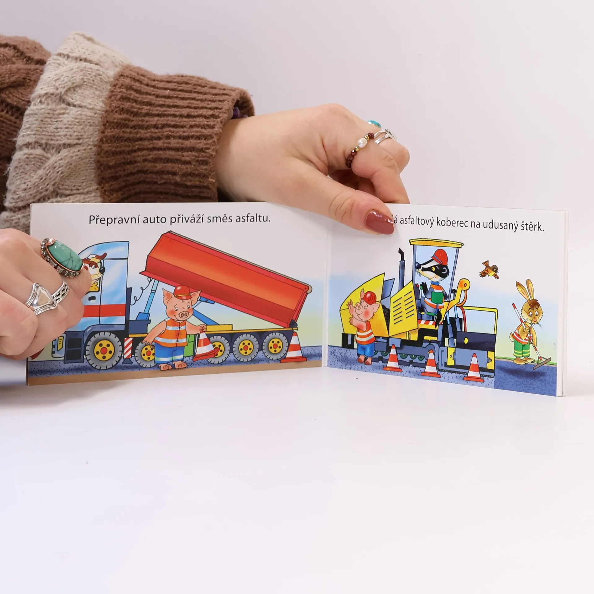 Jak se staví silnice? Barevné rozkládací leporelo pro děti.