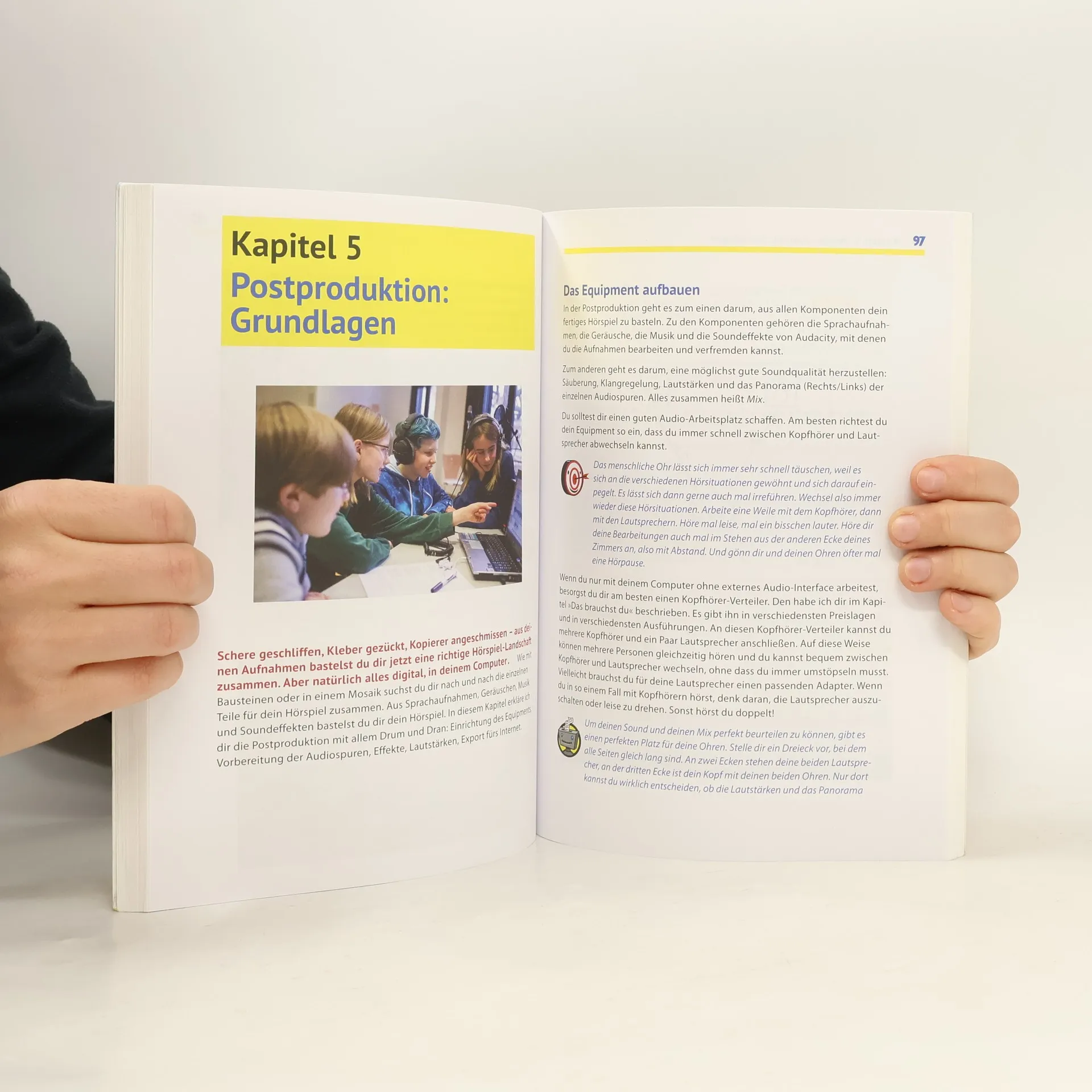 Du wolltest schon immer mal dein eigenes Hörbuch aufnehmen, deine Storys erfinden und erzählen, selber entscheiden, was im Radio läuft, oder einfach mal deine Meinungen und Geschichten mit anderen teilen? Wir geben dir einen einfachen Leitfaden an die Hand, der dir zeigt, wie du Hörspiele und Podcasts selber produzieren kannst, von der allerersten groben Story-Idee bis zum fertigen Produkt. Wir zeigen dir, wie du Skripte erstellst, die Proben gestaltest und wie du mit dem Audio-Equipment umgehst. Steig ein in die Welt der Hörspiele und Podcasts und werde dein eigener Produzent! Bestens geeignet für Kinder und Jugendliche ab 10 Jahren.