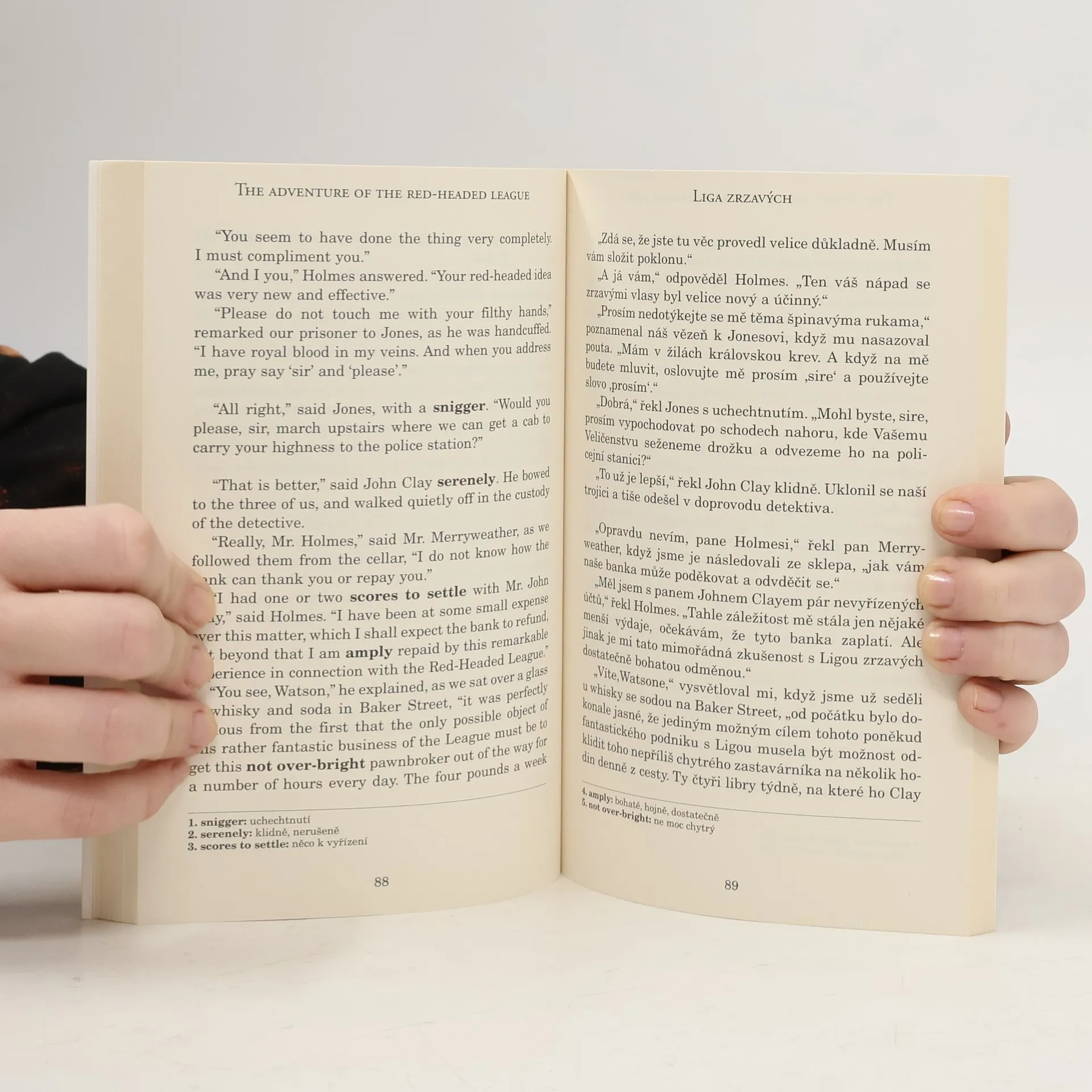 Výběr čtyř příběhů slavného detektiva Sherlocka Holmese obsahuje následující povídky Skandál v Čechách, kde neporazitelného detektiva překoná ženský důvtip, Ligu zrzavých, příběh o nezdařeném pokusu o velkou bankovní loupež, Případ totožnosti, v němž prostoduchá mladá dědička v den svatby marně čeká na svého ženicha, a příběh Pět pomerančových…