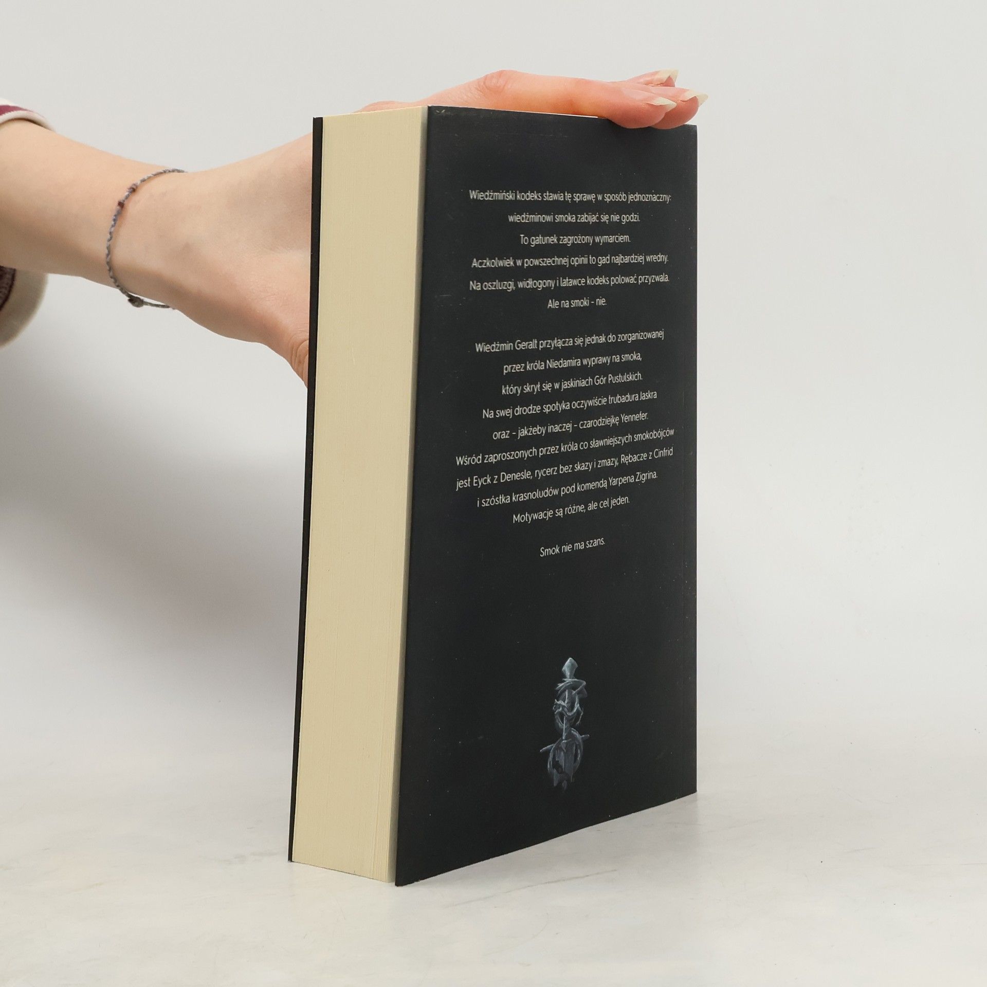 Wiedźmiński kodeks stawia tę sprawę w sposób jednoznaczny: wiedźminowi smoka zabijać się nie godzi. To gatunek zagrożony wymarciem. Aczkolwiek w powszechnej opinii to gad najbardziej wredny. Na oszluzgi, widłogony i latawce kodeks polować przyzwala. Ale na smoki - nie. Wiedźmin Geralt przyłącza się jednak do zorganizowanej przez króla Niedamira wyprawy na smoka, który skrył się w jaskiniach Gór Pustulskich. Na swej drodze spotyka trubadura Jaskra oraz - jakżeby inaczej - czarodziejkę Yennefer. Wśród zaproszonych przez króla co sławniejszych smokobójców jest Eyck z Denesle, rycerz bez skazy i zmazy, Rębacze z Cinfrid i szóstka krasnoludów pod komendą Yarpena Zigrina. Motywacje są różne, ale cel jeden. Smok nie ma szans.