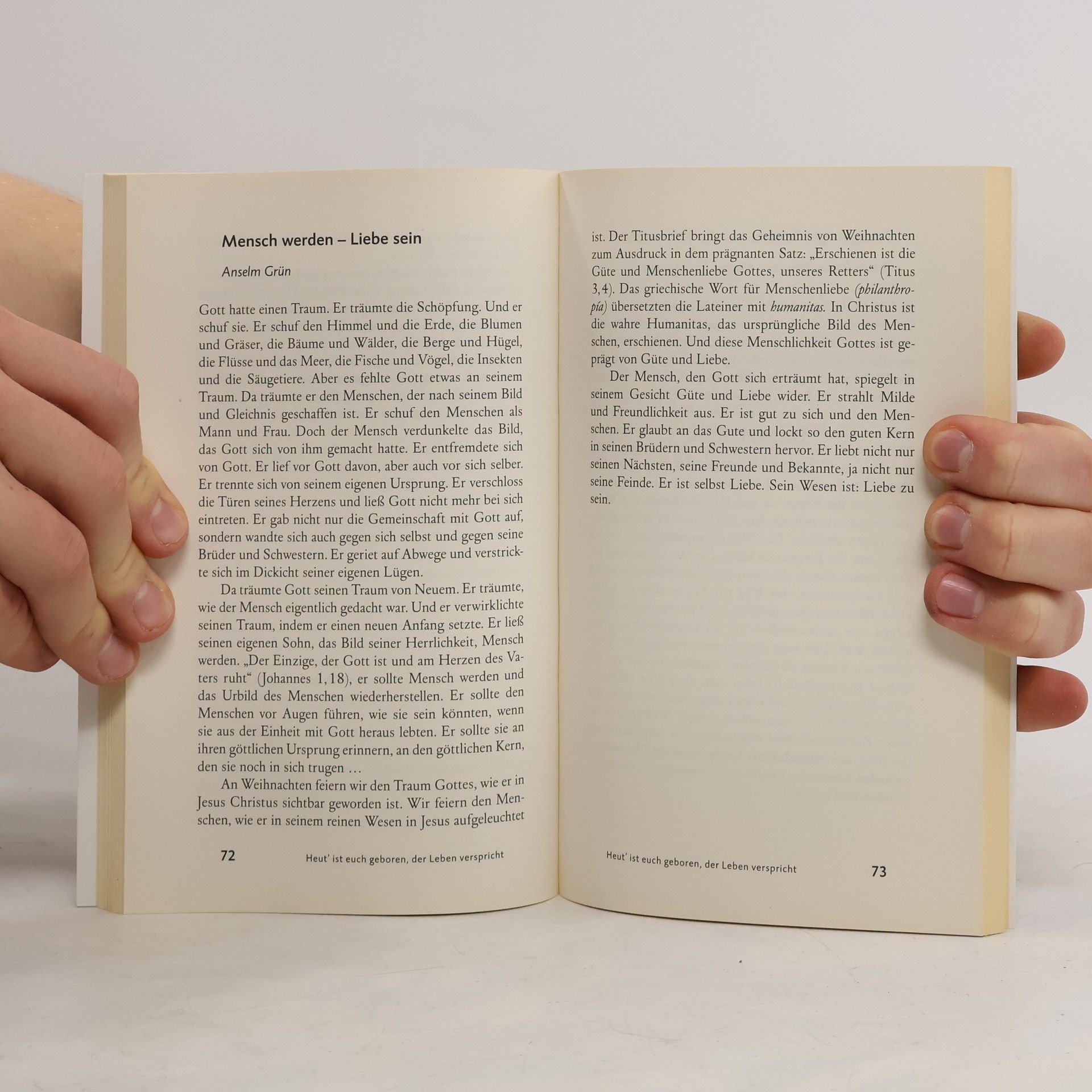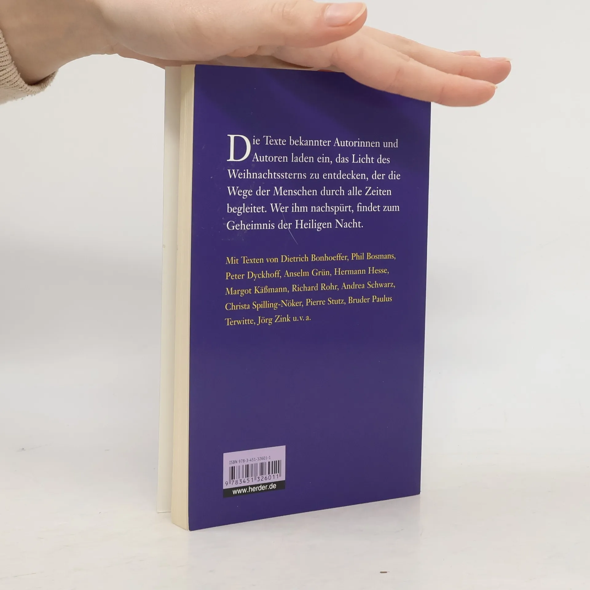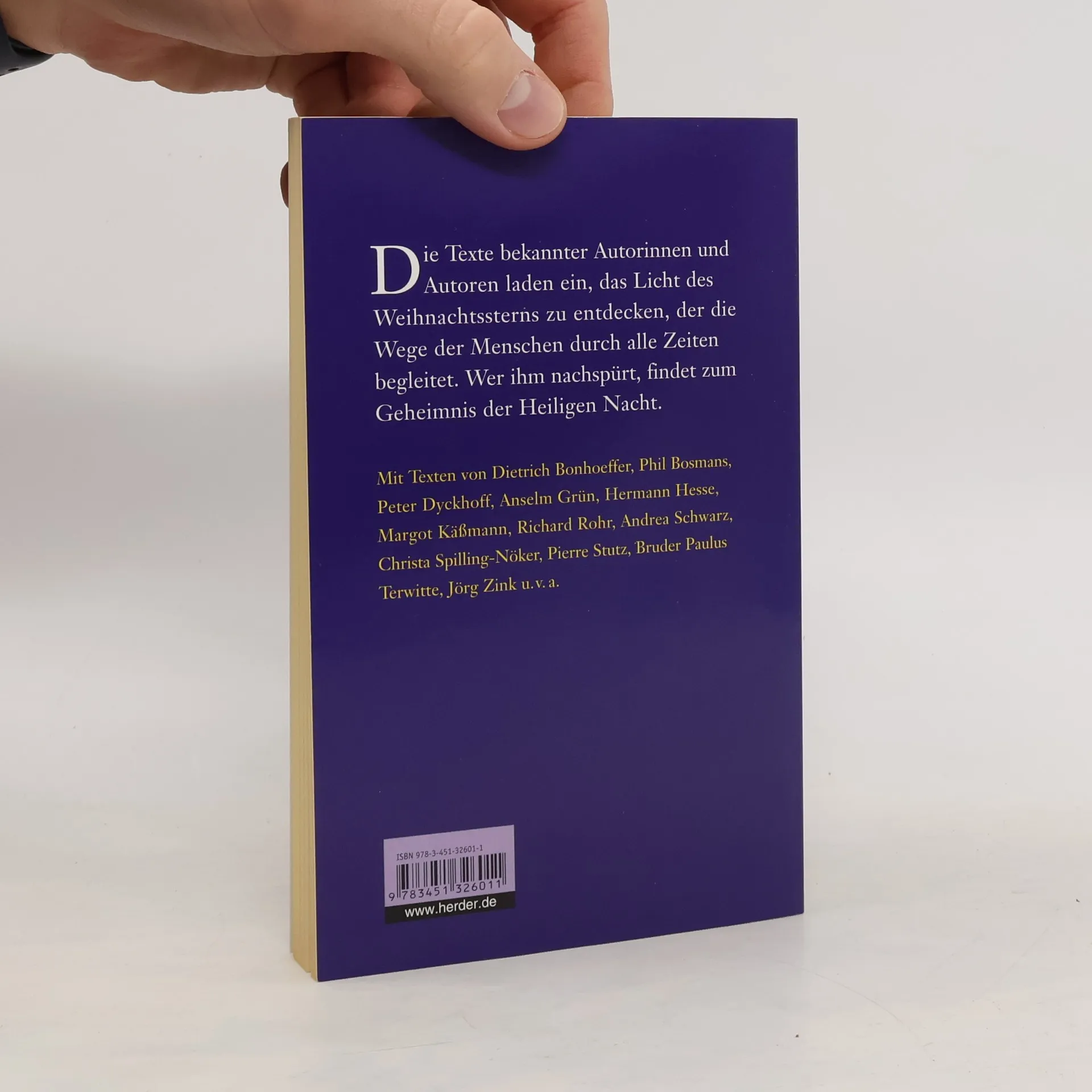 Die Geschichten und Betrachtungen, Lieder und Gedichte dieses Bandes richten die Augen und das Herz auf das Licht von Weihnachten. Die Texte bekannter Autorinnen und Autoren laden ein, das Licht des Weihnachtssterns zu entdecken, der die Wege der Menschen durch alle Zeit begleitet. Wer ihm folgt, findet zum Geheimnis der Heiligen Nacht. Mit Texten unter anderem von: Benedikt XVI. Dietrich Bonhoeffer Phil Bosmans Peter Dyckhoff Anselm Grün Franz Kamphaus Margot Käßmann Anthony de Mello Henri Nouwen Huub Oosterhuis Andrea Schwarz Christa Spilling-Nöker Pierre Stutz Jörg Zink