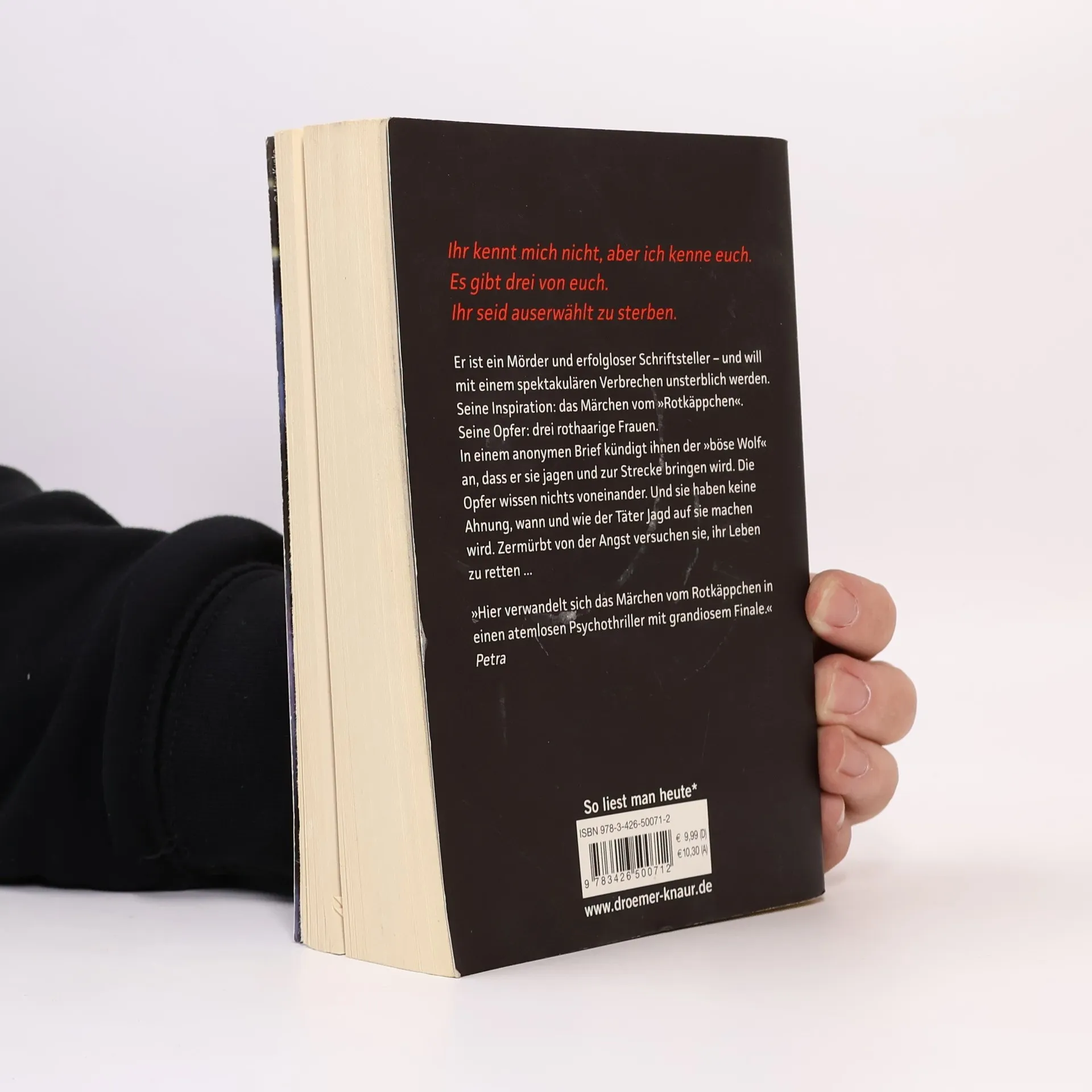 Er ist ein Mörder und erfolgloser Schriftsteller – und will mit einem spektakulären Verbrechen unsterblich werden. Seine Inspiration: das Märchen vom Rotkäppchen. Seine Opfer: drei rothaarige Frauen. In einem anonymen Brief kündigt ihnen der »böse Wolf« an, dass er sie jagen und zur Strecke bringen wird. Die Opfer wissen nichts voneinander. Und sie haben keine Ahnung, wann und wie der Täter Jagd auf sie machen wird. Zermürbt von ihrer Angst versuchen sie, ihr Leben zu retten ...