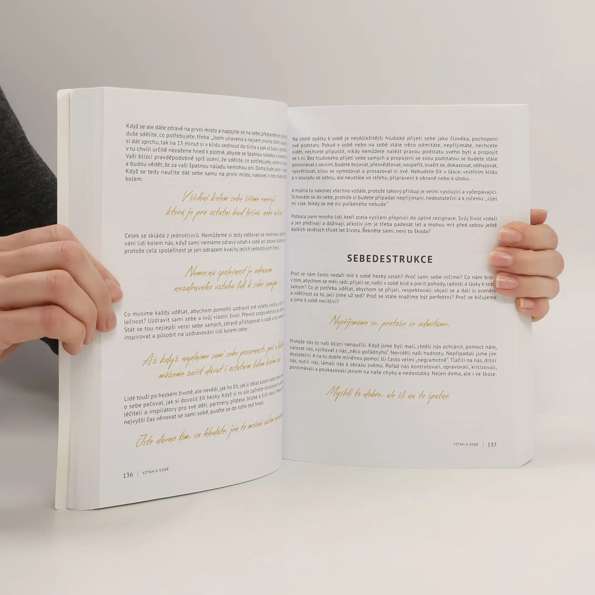 Cítíte se v životě zmatení a ztracení? Žijte životy těch ostatních? Hledáte sami sebe a své místo na Zemi? Nemáte žádnou vizi ani cíl? Nebo jste si je už všechny splnili a nevíte, co dál? Toužíte zpomalit, nadechnout se, udělat si pořádek sami v sobě, ve svých vztazích, ve svém životě a najít jeho hlubší smysl? Vydejte se na cestu sebepoznání k rozvoji nejlepší verze sebe samých. Kniha je skvělým průvodcem pro toho, kdo cítí, že potřebuje změnu, a hledá cestu ke kvalitnějšímu a šťastnějšímu životu. Je to víc než kniha. S ní vstoupíte přímo do intenzivního a léčivého sebepoznávacího procesu. Začnete postupně chápat a uzdravovat svá vnitřní zranění. Otevřete své srdce, které vás povede k pocitu pochopení, přijetí, úlevy, odpuštění a vděčnosti. Dovolíte tím radosti a lásce vstoupit do vašeho života. Cesta zpátky k sobě je návod, jak dojít k nejlepší verzi sebe samých a trvale ji žít! Kniha je poselstvím, že můžeme žít krásný, kvalitní a naplněný život každý den. Že je tu v nejkrásnější formě pro každého, kdo se pro to rozhodne. Vykročte na svoji Cestu zpátky k sobě a rozzařte svůj život.