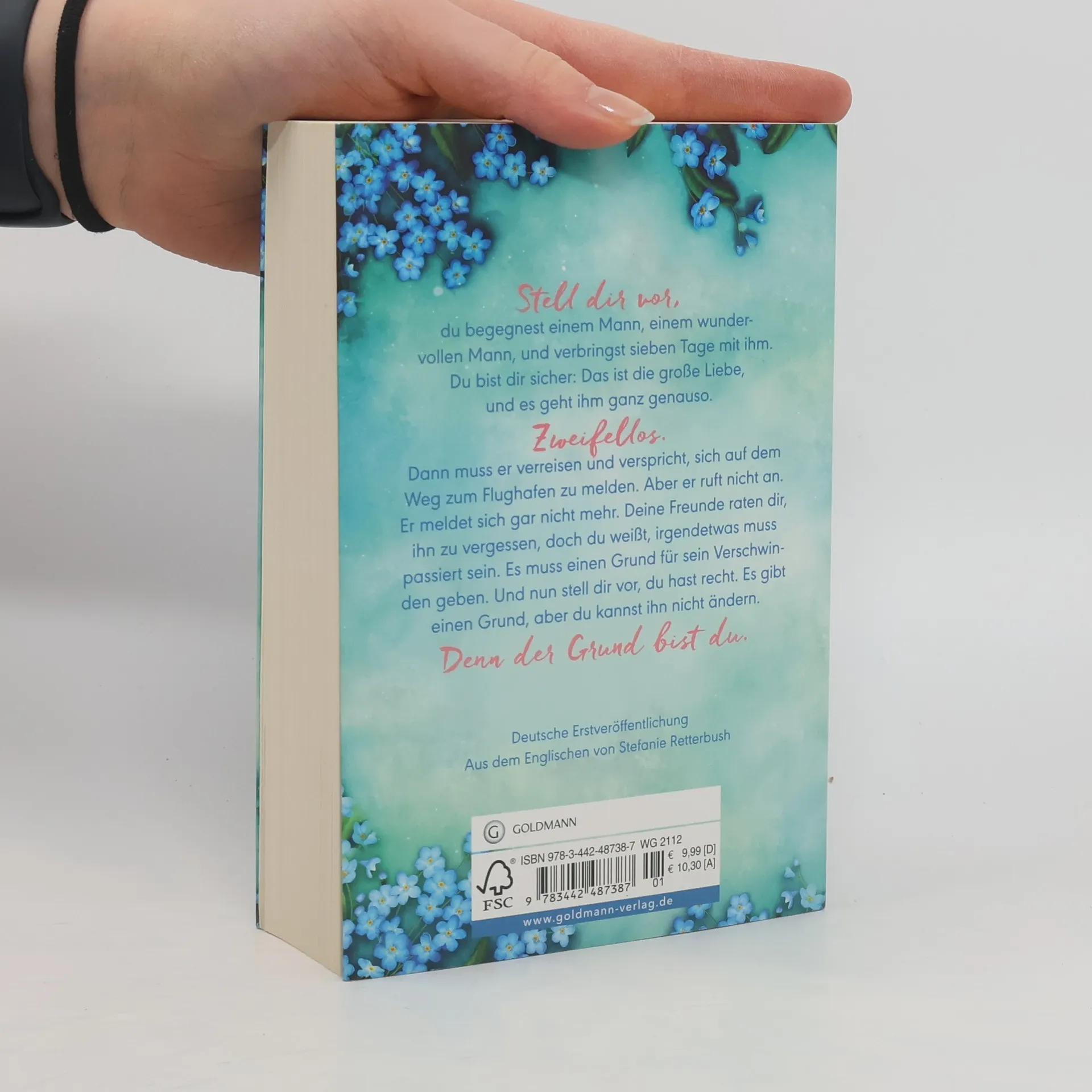 Stell dir vor, du begegnest einem Mann, einem wundervollen Mann, und verbringst sieben Tage mit ihm. Am Ende dieser Woche bist du dir sicher: Das ist die große Liebe, und es geht ihm ganz genauso. Zweifellos. Dann muss er verreisen und verspricht dir, er meldet sich auf dem Weg zum Flughafen. Aber er ruft nicht an. Er meldet sich gar nicht mehr. Deine Freunde raten dir, ihn zu vergessen, doch du weißt, sie irren sich. Irgendetwas muss passiert sein, es muss einen Grund für sein Verschwinden geben. Und nun stell dir vor, du hast recht. Es gibt einen Grund, aber du kannst ihn nicht ändern. Denn der Grund bist du.