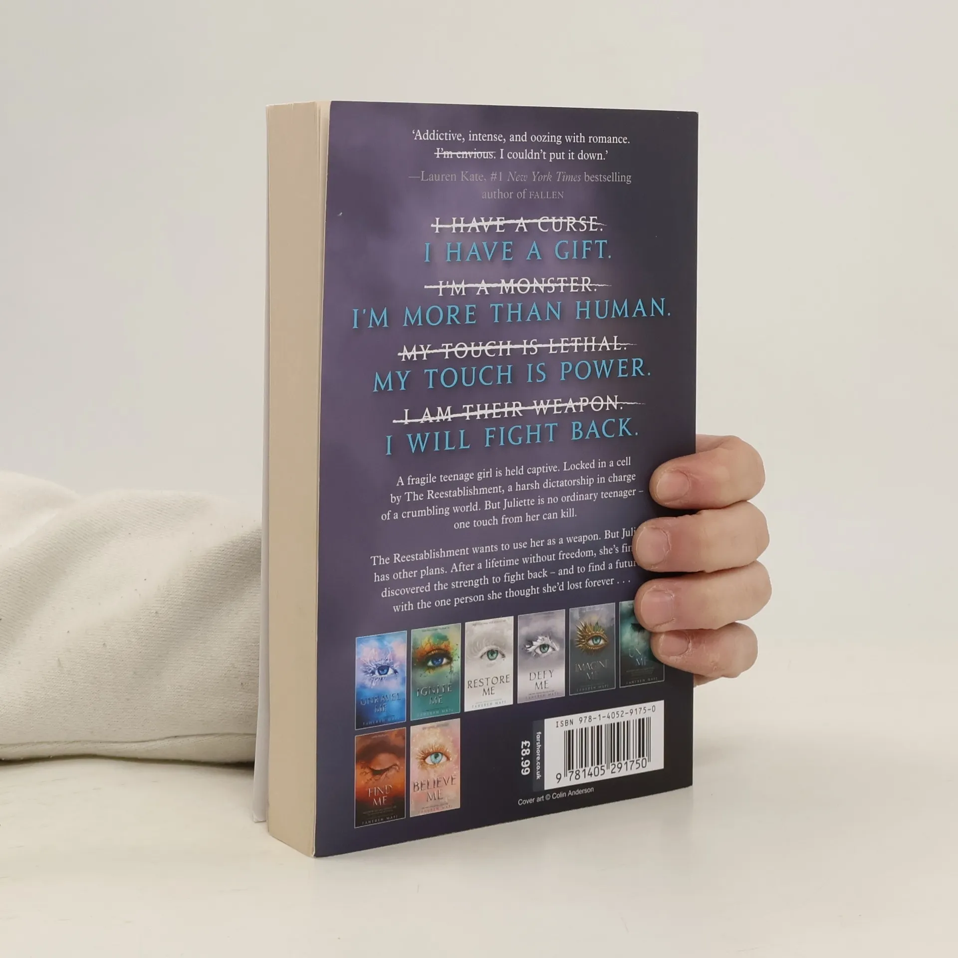 A fragile young teenage girl is held captive. Locked in a cell by The Reestablishment – a harsh dictatorship in charge of a crumbling world. This is no ordinary teenager. Juliette is a threat to The Reestablishment's power. One touch from her can kill. But not only is she a threat, she is potentially the most powerful weapon they could have. Juliette has never fought for herself before but when she’s reunited with the one person who ever cared about her, the depth of the emotion and the power within her become explosive …