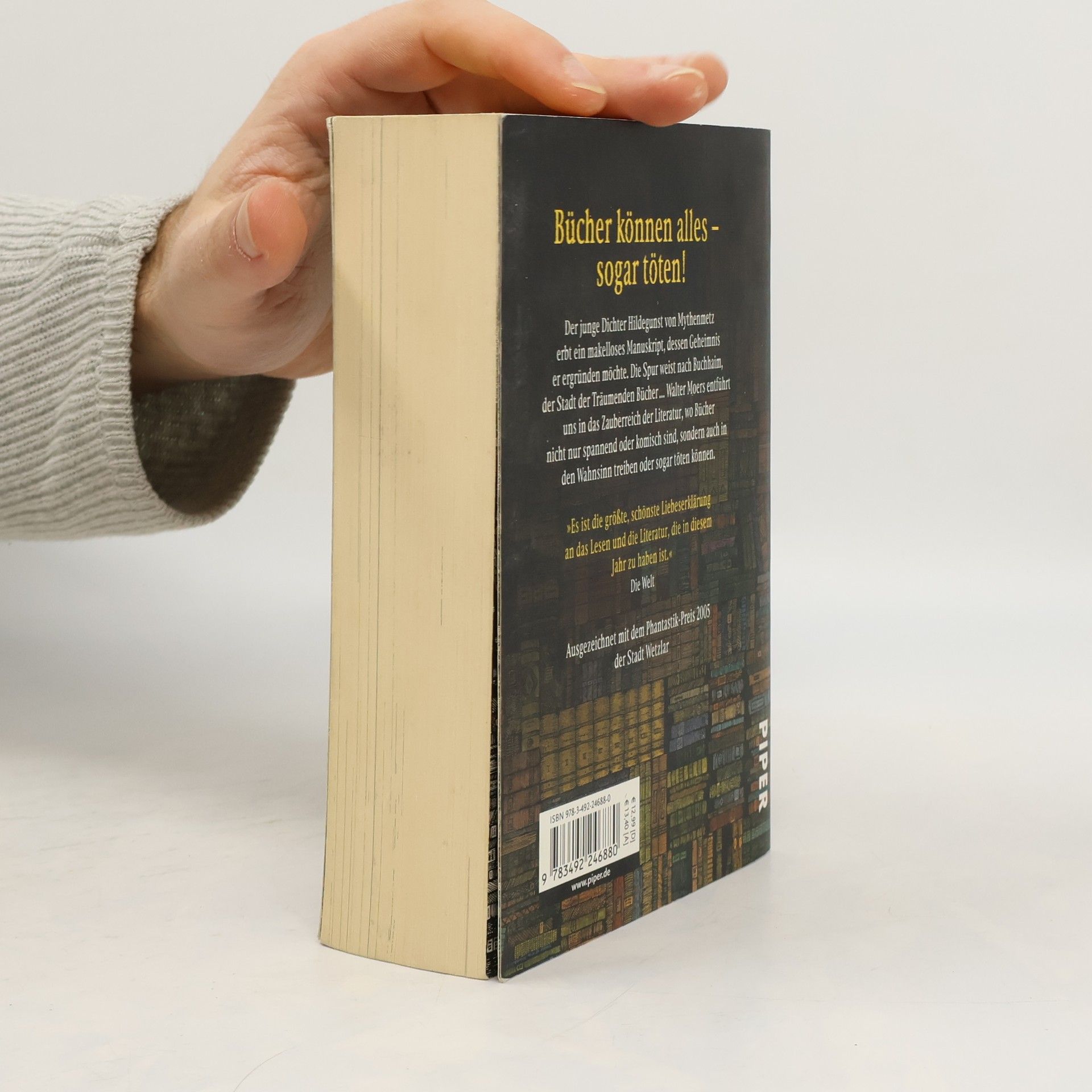 Der junge Dichter Hildegunst von Mythenmetz erbt ein makelloses Manuskript, dessen Geheimnis er ergründen möchte. Die Spur weist nach Buchhaim, der Stadt der Träumenden Bücher … Walter Moers entführt uns in das Zauberreich der Literatur, wo Bücher nicht nur spannend oder komisch sind, sondern auch in den Wahnsinn treiben oder sogar töten können. Nur wer bereit ist, derartige Risiken in Kauf zu nehmen, möge dem Autor folgen. Allen anderen wünschen wir ein gesundes, aber todlangweiliges Leben!