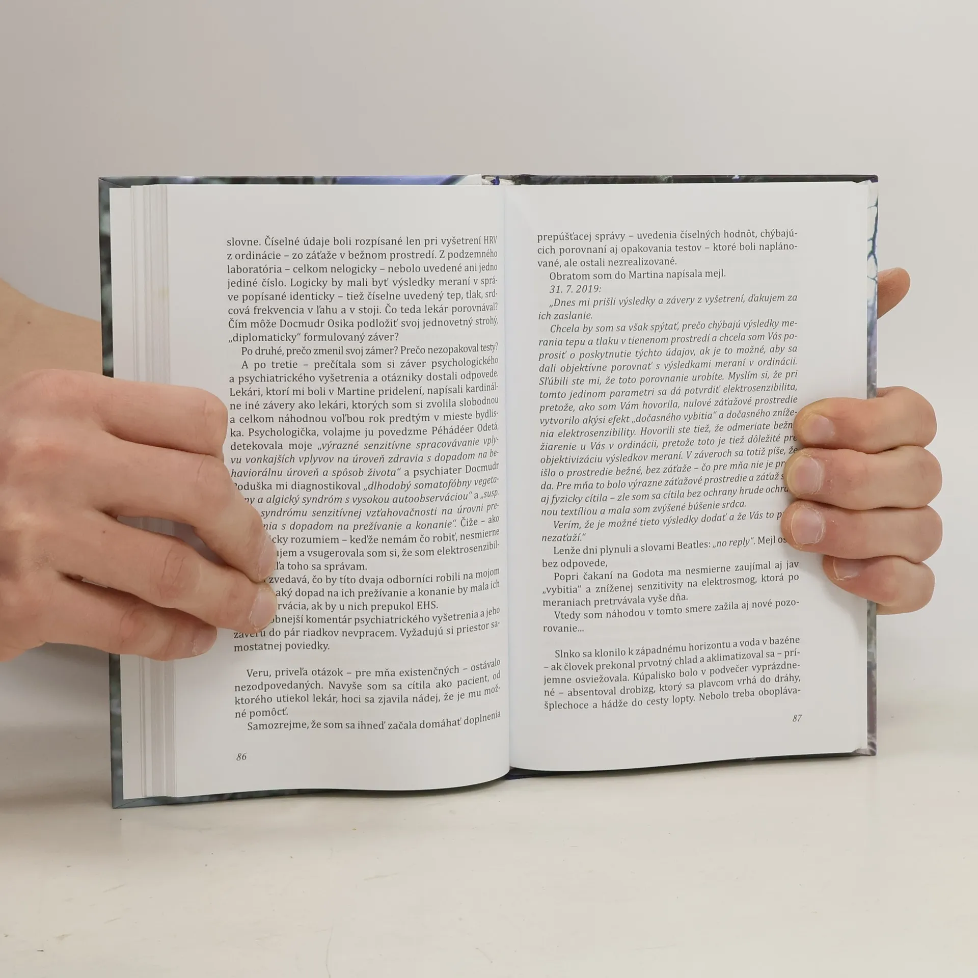 Osamelí, nepochopení, vyčlenení zo spoločenského a pracovného života, zaťažení zdravotnými problémami a diskriminovaní štátnymi orgánmi takí sú ľudia, ktorí trpia novou technogénnou chorobou elektrohypersenzibilitou - EHS. Jedinečná kniha podľa skutočných udalostí vypovedá o živote ľudí postihnutých EHS v dnešnom svete zamorenom žiarením mobilov, wifín, bezdrôtovej elektroniky a hroziacej inštalácie 5G sietí. Poviedkový autobiografický príbeh je doplnený odbornými informáciami o pôsobení rádiofrekvenčného žiarenia a o EHS. Autobiografický román o pohľade do zákulisia rizík elektromagnetického žiarenia.