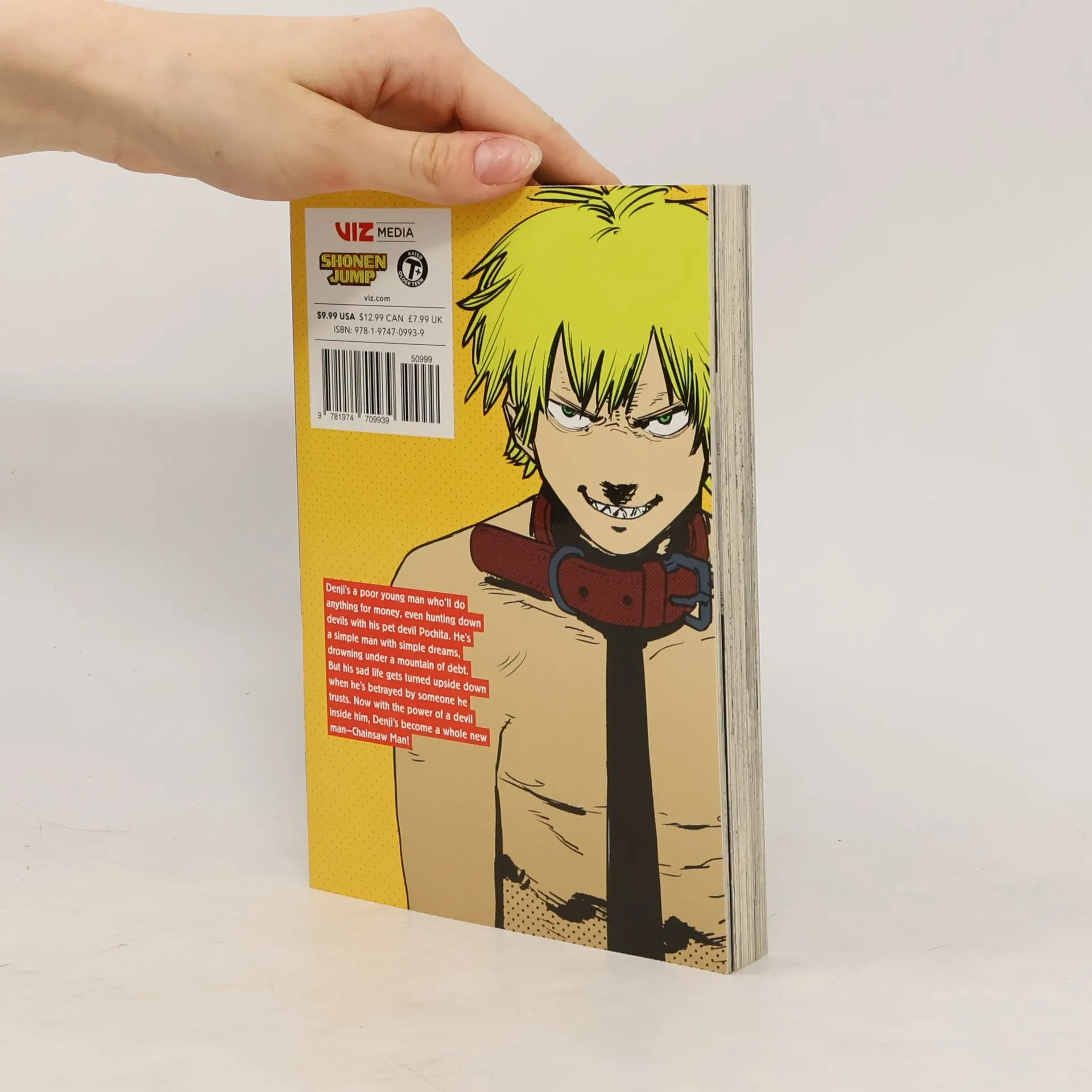 Broke young man + chainsaw dog demon = Chainsaw Man! Denji was a small-time devil hunter just trying to survive in a harsh world. After being killed on a job, Denji is revived by his pet devil-dog Pochita and becomes something new and dangerous—Chainsaw Man! Denji’s a poor young man who’ll do anything for money, even hunting down devils with his pet devil-dog Pochita. He’s a simple man with simple dreams, drowning under a mountain of debt. But his sad life gets turned upside down one day when he’s betrayed by someone he trusts. Now with the power of a devil inside him, Denji’s become a whole new man—Chainsaw Man!