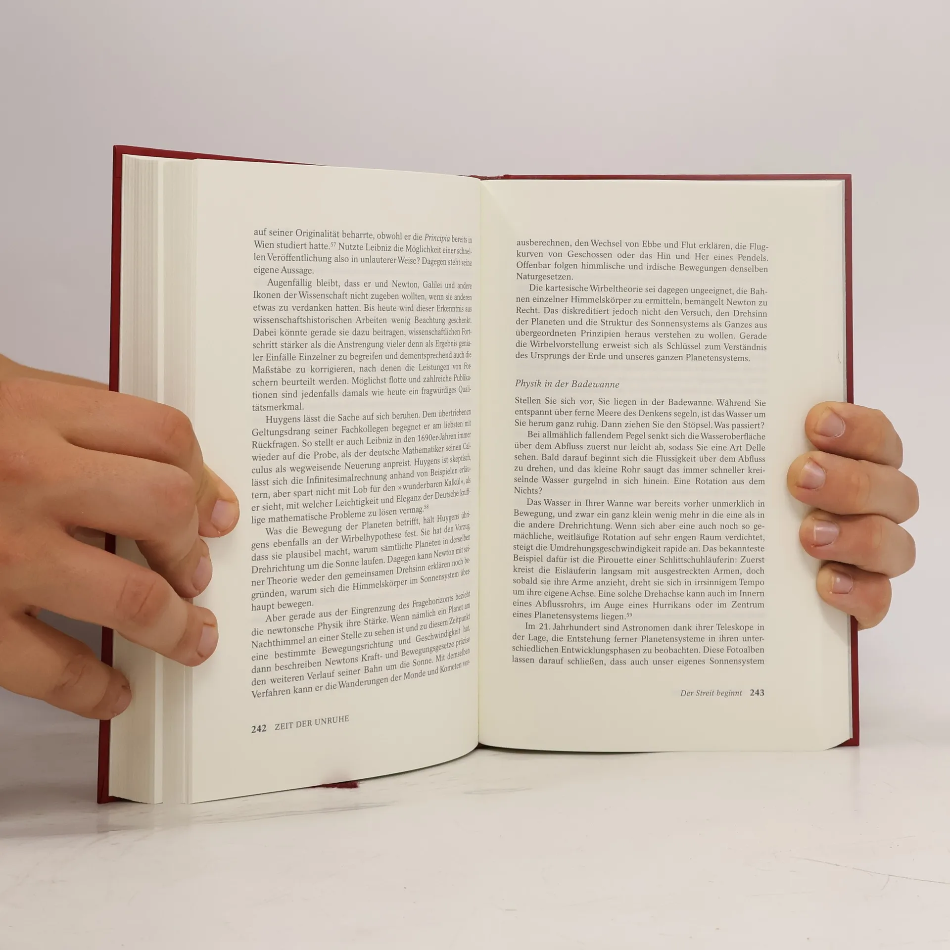 Der Streit zwischen Isaac Newton und Gottfried Wilhelm Leibniz weitet sich zu einer Staatsaffäre aus. Ihre maßgebende Diskussion über das Wesen der Zeit markiert die radikale Umwälzung des Zeitverständnisses in einer Epoche, in der die Genauigkeit mechanischer Uhren sprunghaft gestiegen ist: Erst jetzt können die Ziffernblätter Minuten und Sekunden differenzieren und der private Besitz von Uhren wird für das großstädtische Bürgertum zur Selbstverständlichkeit. Anhand der Lebensläufe von Leibniz und Newton rollt Thomas de Padova die Geschichte unseres Verständnisses von Zeit auf. Er zeigt, warum die Zeit an der Schwelle zum 18. Jahrhundert so allgegenwärtig und zugleich zu einem zentralen Thema der Wissenschaft wird. Kurz: warum die Neuzeit ihren Namen zu Recht trägt. Eine fesselnde Entdeckungsreise in die beschleunigte Welt der Moderne.