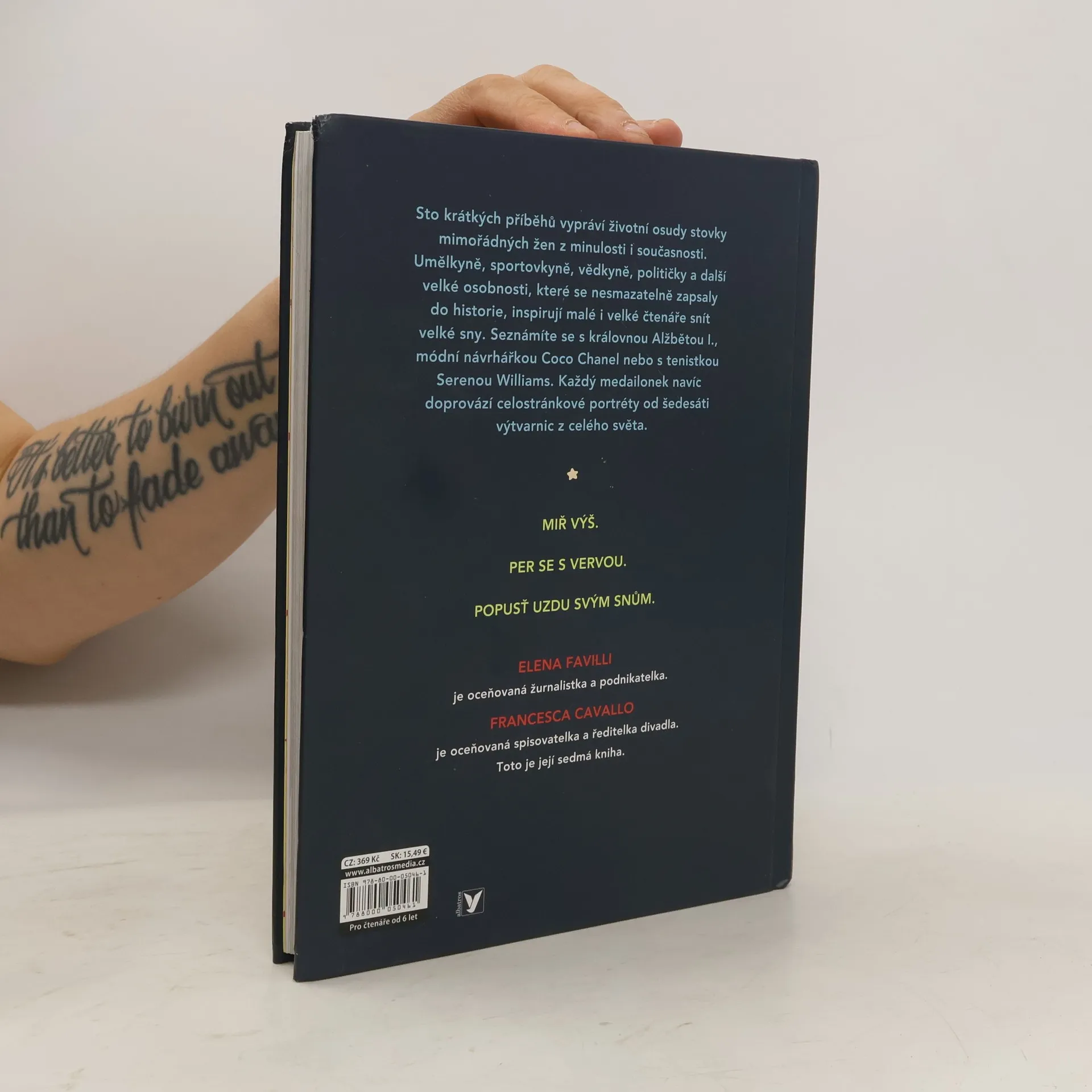 "Sněte, ještě než půjdete spát! Světový bestseller představuje životy inspirativních žen napříč dějinami." Sto krátkých příběhů vypráví životní osudy stovky mimořádných žen z minulosti i současnosti. Umělkyně, sportovkyně, vědkyně, političky a další velké osobnosti, které se nesmazatelně zapsaly do historie, inspirují malé i velké čtenáře snít velké sny. Seznámíte se s královnou Alžbětou I., módní návrhářkou Coco Chanel nebo s tenistkou Serenou Williams. Každý medailonek navíc doprovází celostránkové portréty od šedesáti výtvarnic z celého světa.