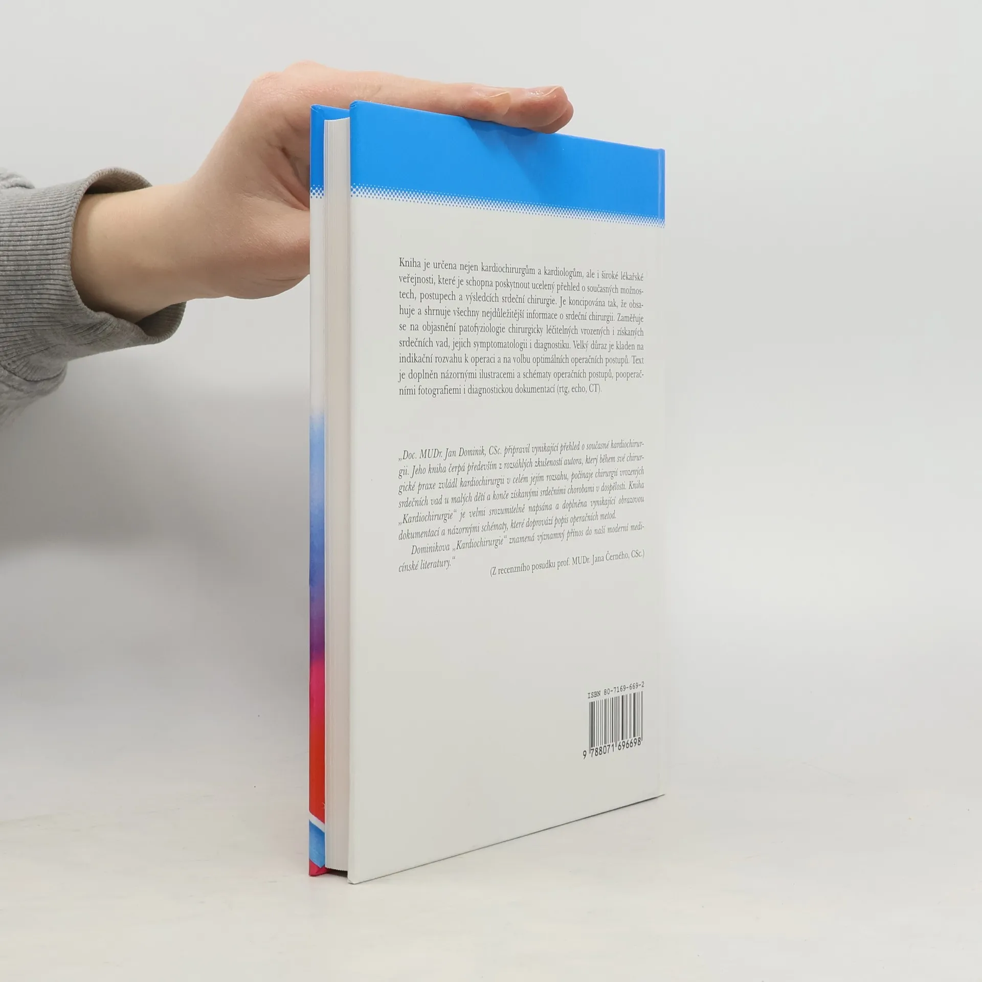 O knize Kniha obsahuje a shrnuje nejdůležitější informace o současné srdeční chirurgii. Velký důraz je kladen na indikační rozvahu k operaci a na volbu optimálních operačních postupů. Text je doplněn názornými ilustracemi a schématy operačních metod, peroperačními fotografiemi i diagnostickou dokumentací (rtg, ECHO, CT apod.). Publikace je určena nejen chirurgům a kardiologům, ale i široké lékařské veřejnosti, které je schopna poskytnout ucelený přehled o současných možnostech, postupech a výsledcích srdeční chirurgie.