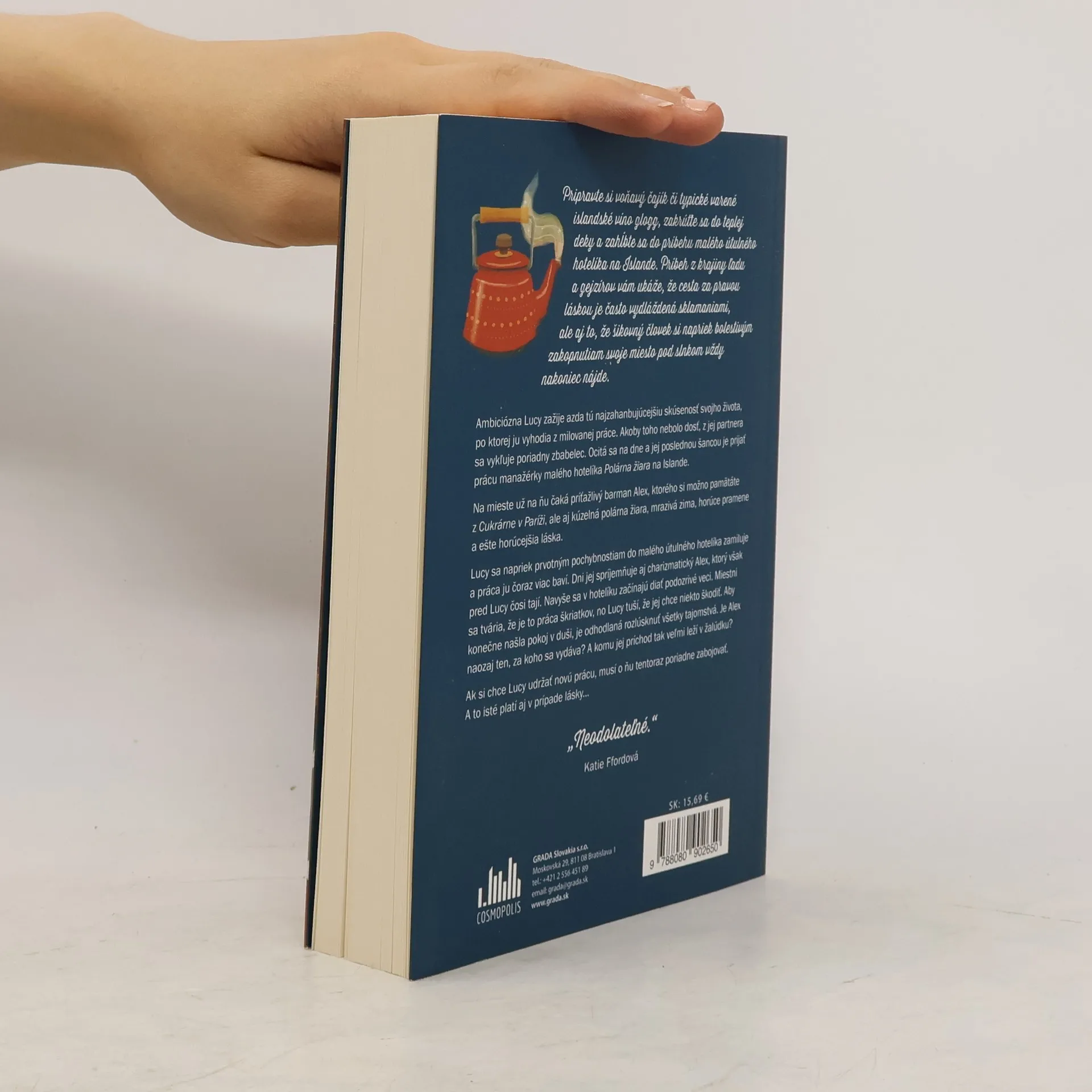 Pripravte si voňavý čajík či typické varené islandské víno glogg, zakrúťte sa do teplej deky a zahĺbte sa do príbehu malého útulného hotelíka na Islande. Príbeh z krajiny ľadu a gejzírov vám ukáže, že cesta za pravou láskou je často vydláždená sklamaniami, ale aj to, že šikovný človek i napriek bolestivým zakopnutiam svoje miesto pod slnkom vždy nakoniec nájde. Ambiciózna Lucy zažije azda tú najzahanbujúcejšiu skúsenosť svojho života, po ktorej ju vyhodia z milovanej práce. Akoby toho nebolo dosť, z jej partnera sa vykľuje poriadny zbabelec. Ocitá sa na dne a jej poslednou šancou je prijať prácu manažérky malého hotelíka Polárna žiara na Islande. Na mieste už na ňu čaká príťažlivý barman Alex, ktorého si možno pamätáte z Cukrárne v Paríži, ale aj kúzelná polárna žiara, mrazivá zima, horúce pramene a ešte horúcejšia láska. Lucy sa napriek prvotným pochybnostiam do malého útulného hotelíka zamiluje a práca ju čoraz viac baví. Dni jej spríjemňuje aj charizmatický Alex, ktorý však pred Lucy čosi tají. Navyše sa v hotelíku začínajú diať podozrivé veci. Miestni sa tvária, že je to práca škriatkov, no Lucy tuší, že jej chce niekto škodiť. Aby konečne našla pokoj v duši, je odhodlaná rozlúsknuť všetky tajomstvá. Je Alex naozaj ten, za koho sa vydáva? A komu jej príchod tak veľmi leží v žalúdku? Ak si chce Lucy udržať novú prácu, musí o ňu tentoraz poriadne zabojovať. A to isté platí aj v prípade lásky...
