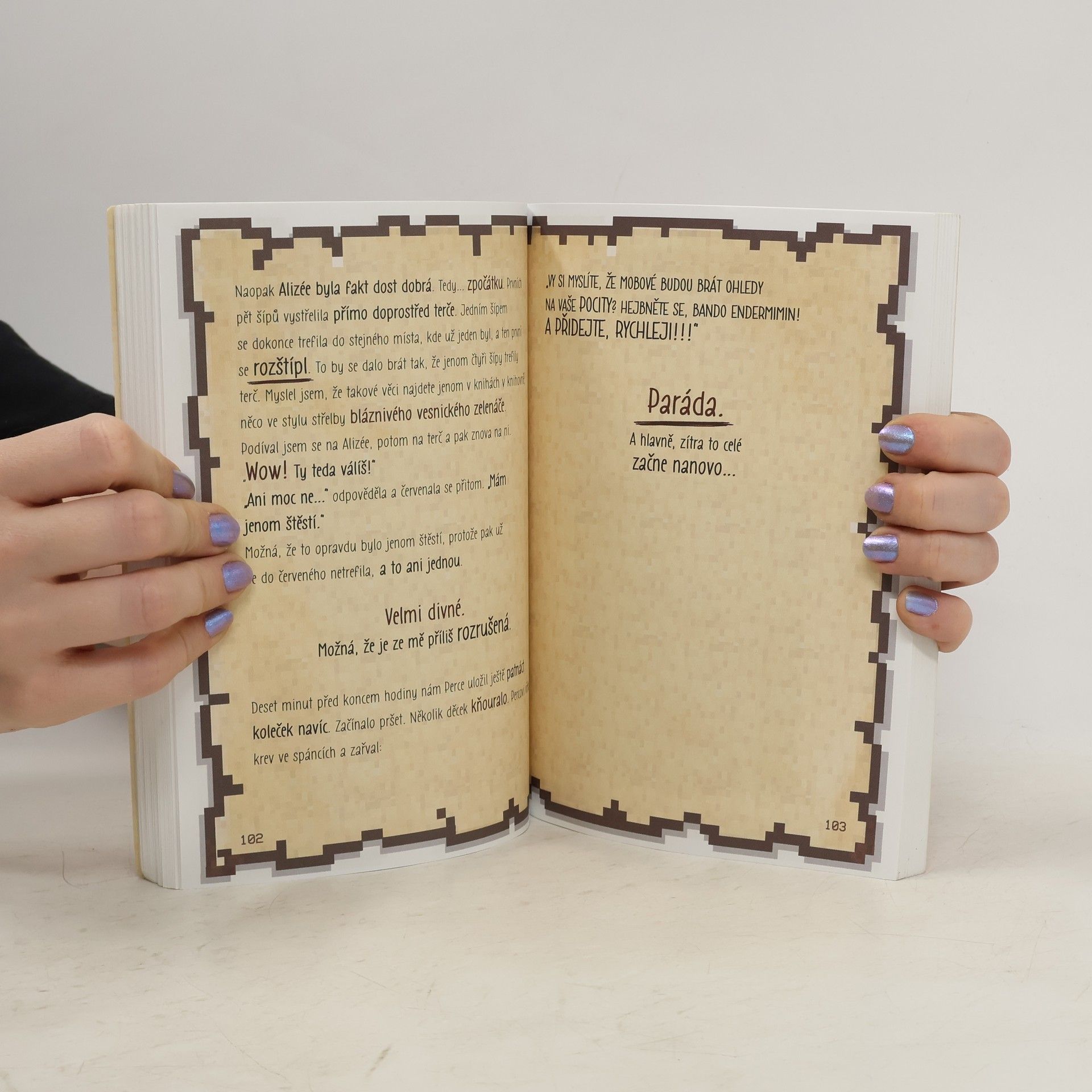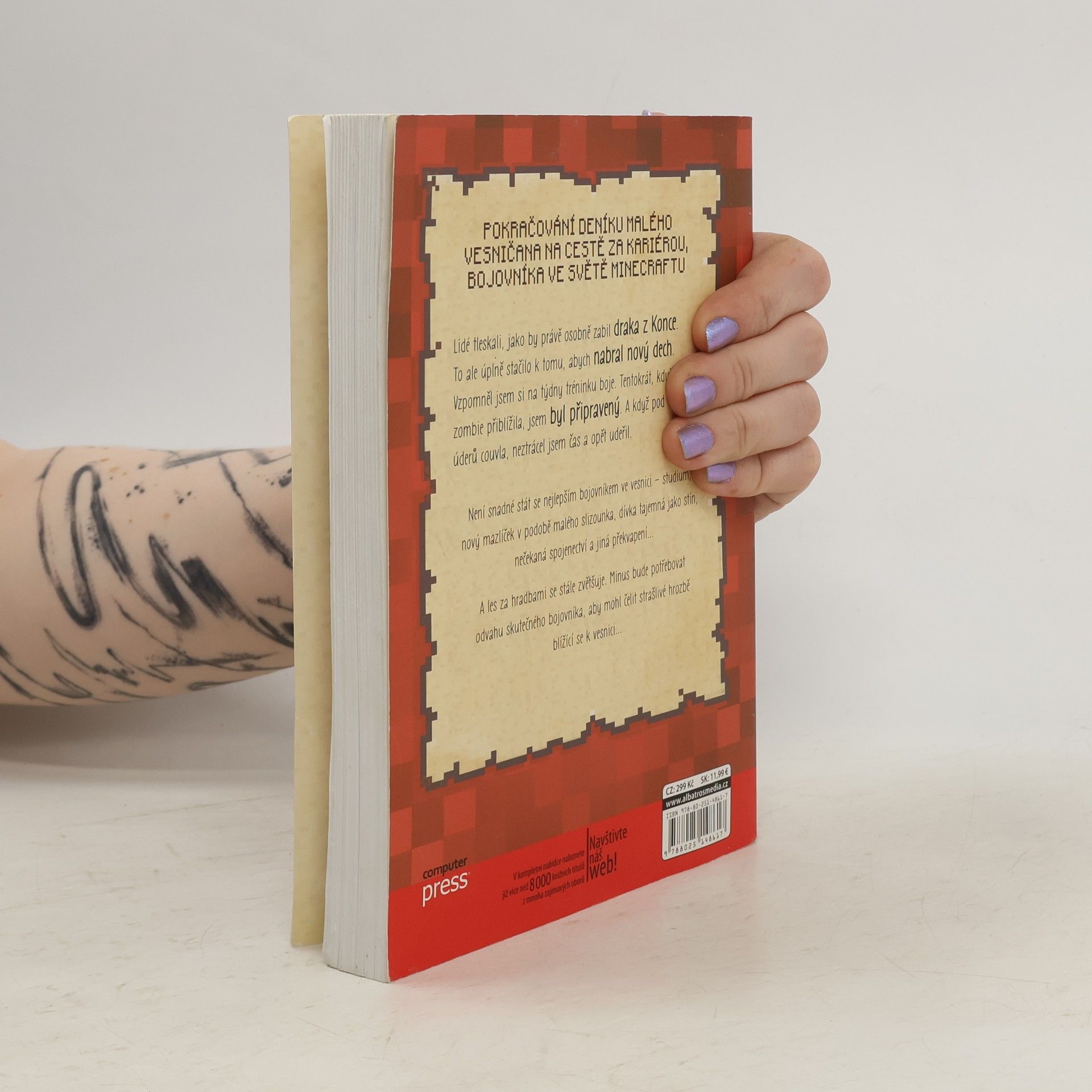 Stát se bojovníkem, to není žádná legrace. Nestačí jen chodit do školy a být mezi nejlepšími. Ve vesnici je pořád živo – mám nového mazlíčka (a je to maličký slizounek), jde po mně parta spolužáků, co si taky brousí zuby na kariéru bojovníka, les za hradbami se nebezpečně přibližuje k vesnici a pořád mě sleduje jedna holka. Ale já se nevzdám. Jako že se Minus jmenuju. Přeloženo z francouzské verze anglického originálu.