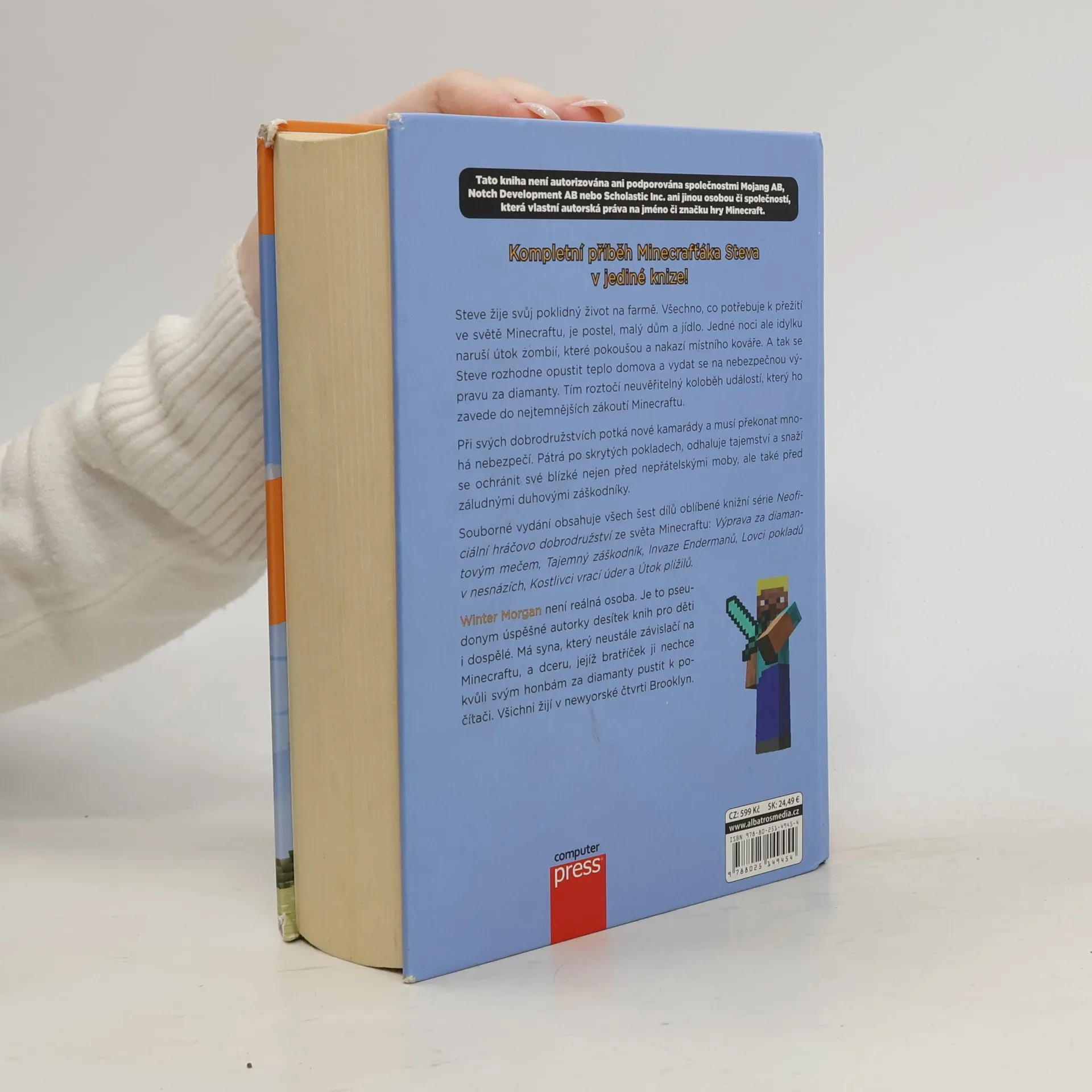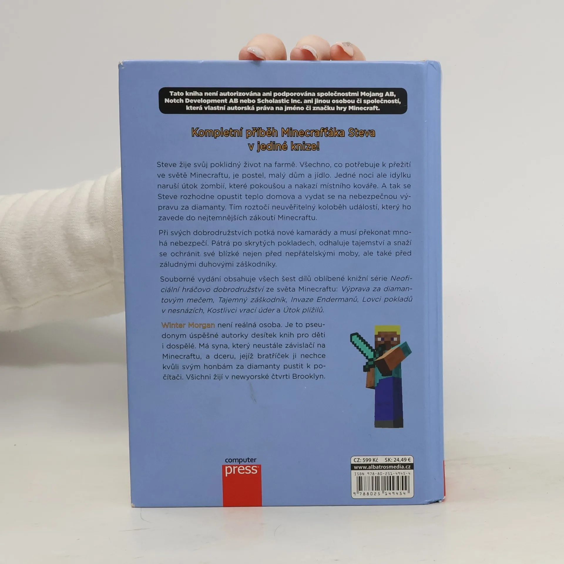 Steve žije svůj poklidný život na farmě. Všechno, co potřebuje k přežití ve světě Minecraftu, je postel, malý dům a jídlo. Jedné noci ale poklidnou idylku naruší útok zombií, které pokoušou a nakazí místního kováře. A tak se Steve rozhodne opustit teplo domova a vydat se na nebezpečnou výpravu za diamanty. Tím roztočí neuvěřitelný koloběh událostí, který ho zavede do nejtemnějších zákoutí Minecraftu. Souborné vydání obsahuje všech šest dílů série o minecrafťáku Stevovi. Největší porce dobrodružství ze světa Minecraftu v jedné knize