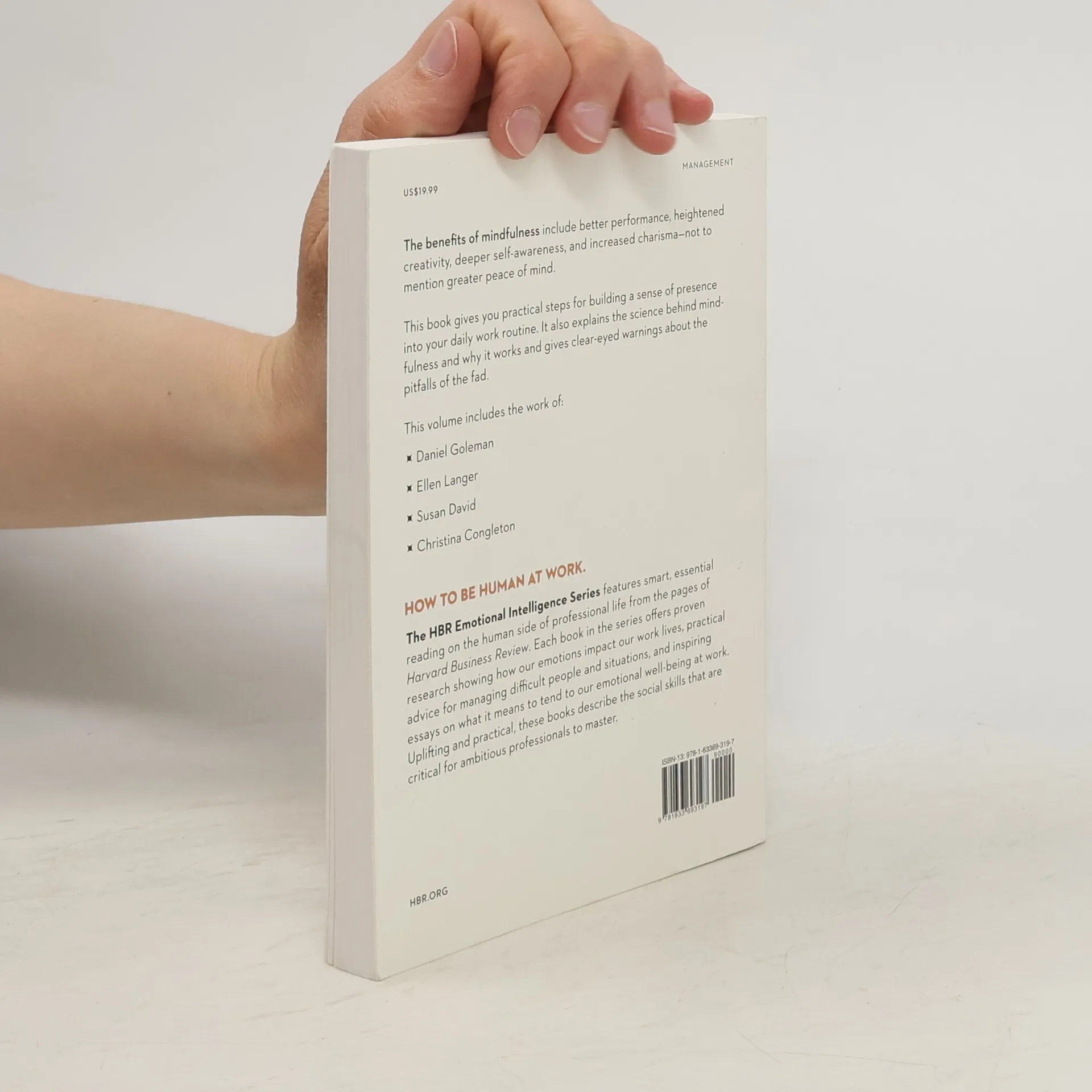 The benefits of mindfulness include better performance, heightened creativity, deeper self-awareness, and increased charismanot to mention greater peace of mind. This book gives you practical steps for building a sense of presence into your daily work routine. It also explains the science behind mindfulness and why it works and gives clear-eyed warnings about the pitfalls of the fad. This volume includes the work of: Daniel Goleman Ellen Langer Susan David Christina Congleton How to be human at work. HBR s Emotional Intelligence Series features smart, essential reading on the human side of professional life from the pages of Harvard Business Review. Each book in the series offers proven research showing how our emotions impact our work lives, practical advice for managing difficult people and situations, and inspiring essays on what it means to tend to our emotional well-being at work. Uplifting and practical, these books describe the social skills that are critical for ambitious professionals to master. "