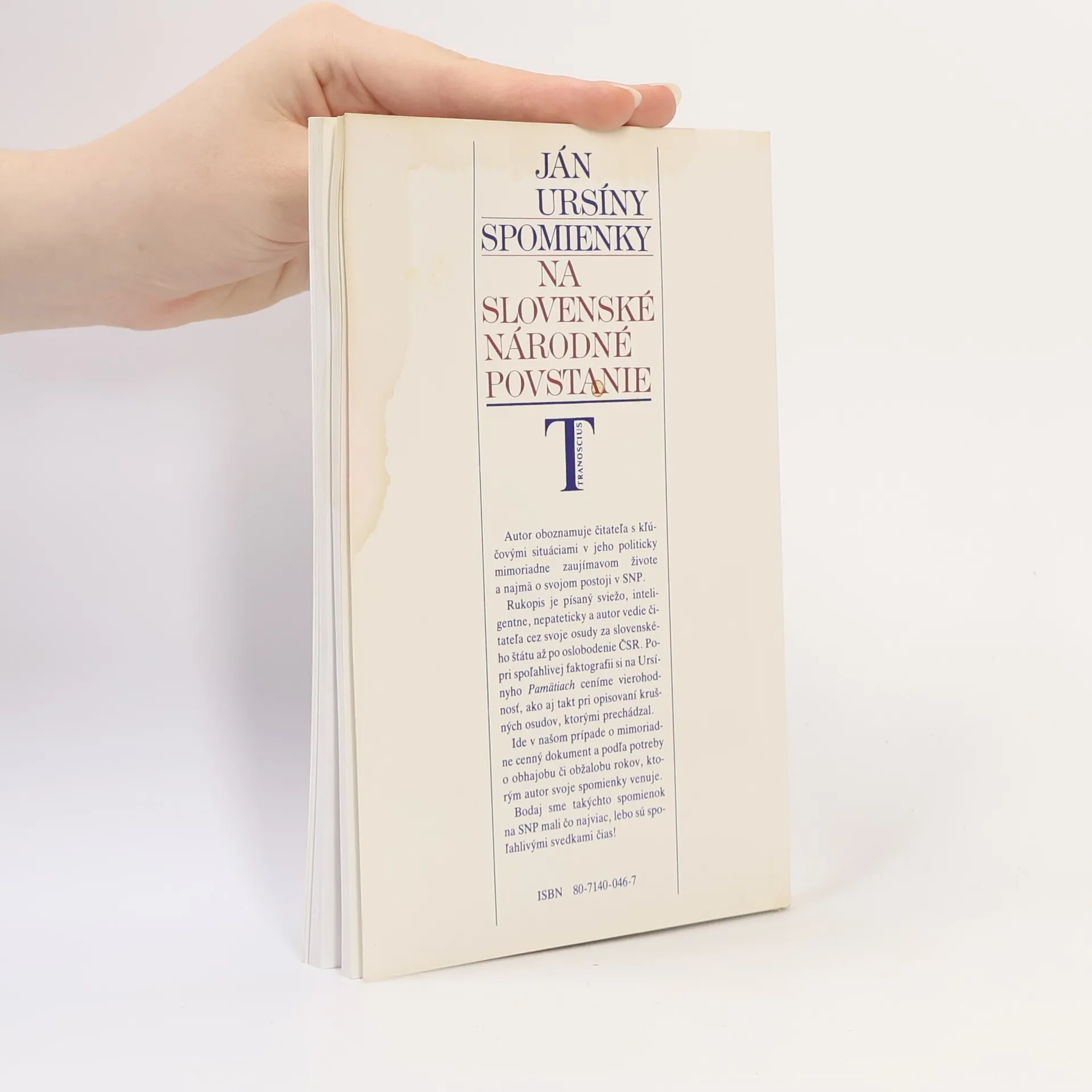 Autor oboznamuje čitateľa s kľúčovými situáciami v jeho politicky mimoriadne zaujímavom živote a najmä o svojom postoji v SNP. Rukopis je písaný sviežo, inteligentne, nepateticky a autor vedie čitateľa cez svoje osudy za slovenského štátu až po oslobodenie ČSR. Popri spoľahlivej faktografii si na Ursínyho Pamätiach ceníme vierohodnosť, ako aj takt pri opisovaní krušných osudov, ktorými prechádzal.