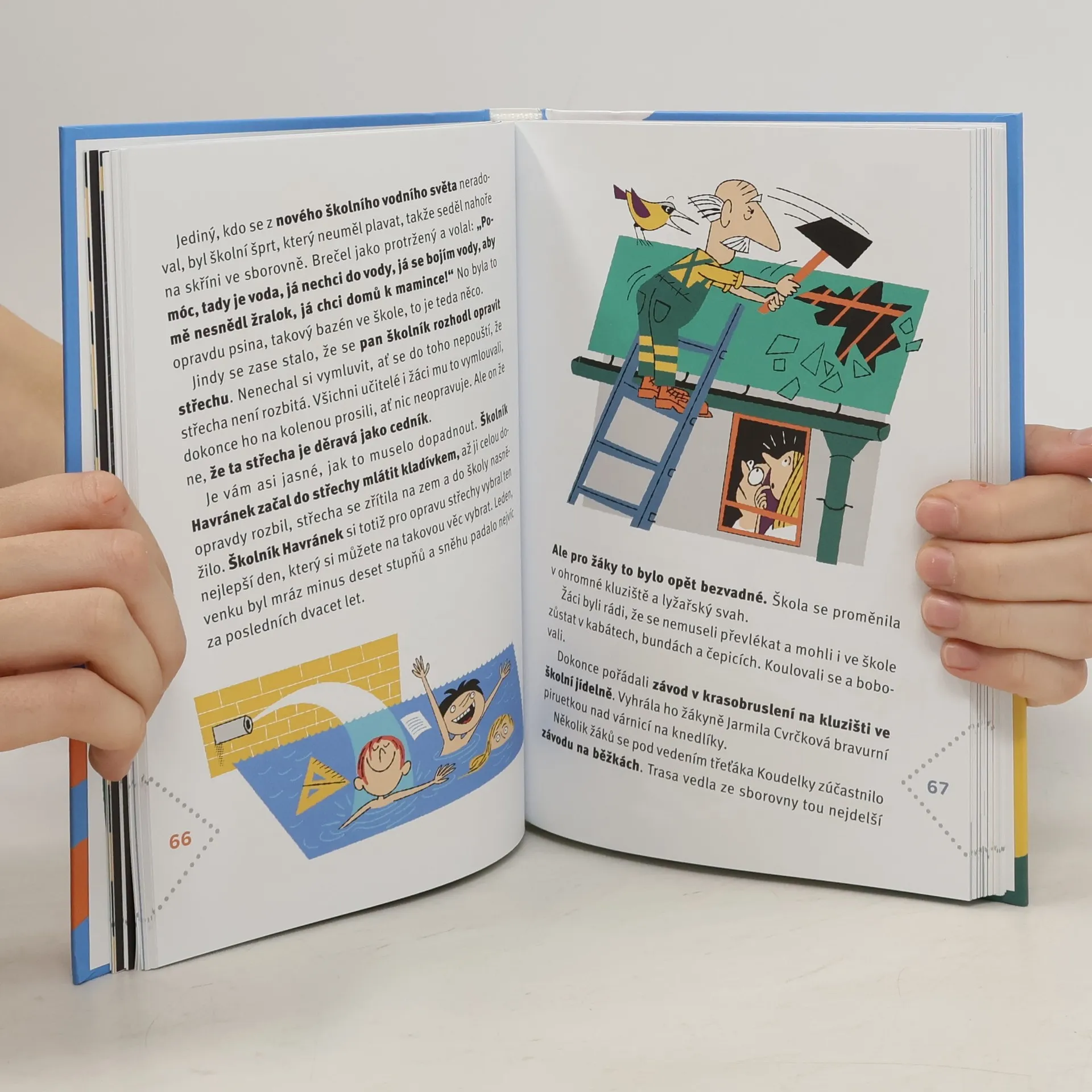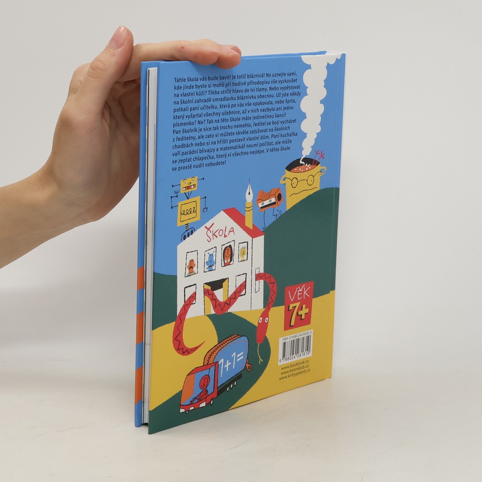 Tahle škola vás bude bavit! Je totiž bláznivá! No uznejte sami, kde jinde byste si mohli při hodině přírodopisu vše vyzkoušet na vlastní kůži? Třeba strčit hlavu do lví tlamy. Nebo vypěstovat na školní zahradě smradlavku bláznivku obecnou. Už jste někdy potkali paní učitelku, která po vás vše opakovala, nebo šprta, který vyšprtal všechny učebnice, až v nich nezbylo ani jedno písmenko? Ne? Tak na této škole máte jedinečnou šanci! Pan školník je sice tak trochu nemehlo, ředitel se bojí vycházet z ředitelny, ale zato si můžete skvěle zalyžovat na školních chodbách nebo si na hřišti postavit vlastní dům. Paní kuchařka vaří parádní blivajzy a matematikář neumí počítat, ale může se zeptat chlapečka, který ví všechno nejlépe. V téhle škole se prostě nudit nebudete! Pro děti od 7 let.