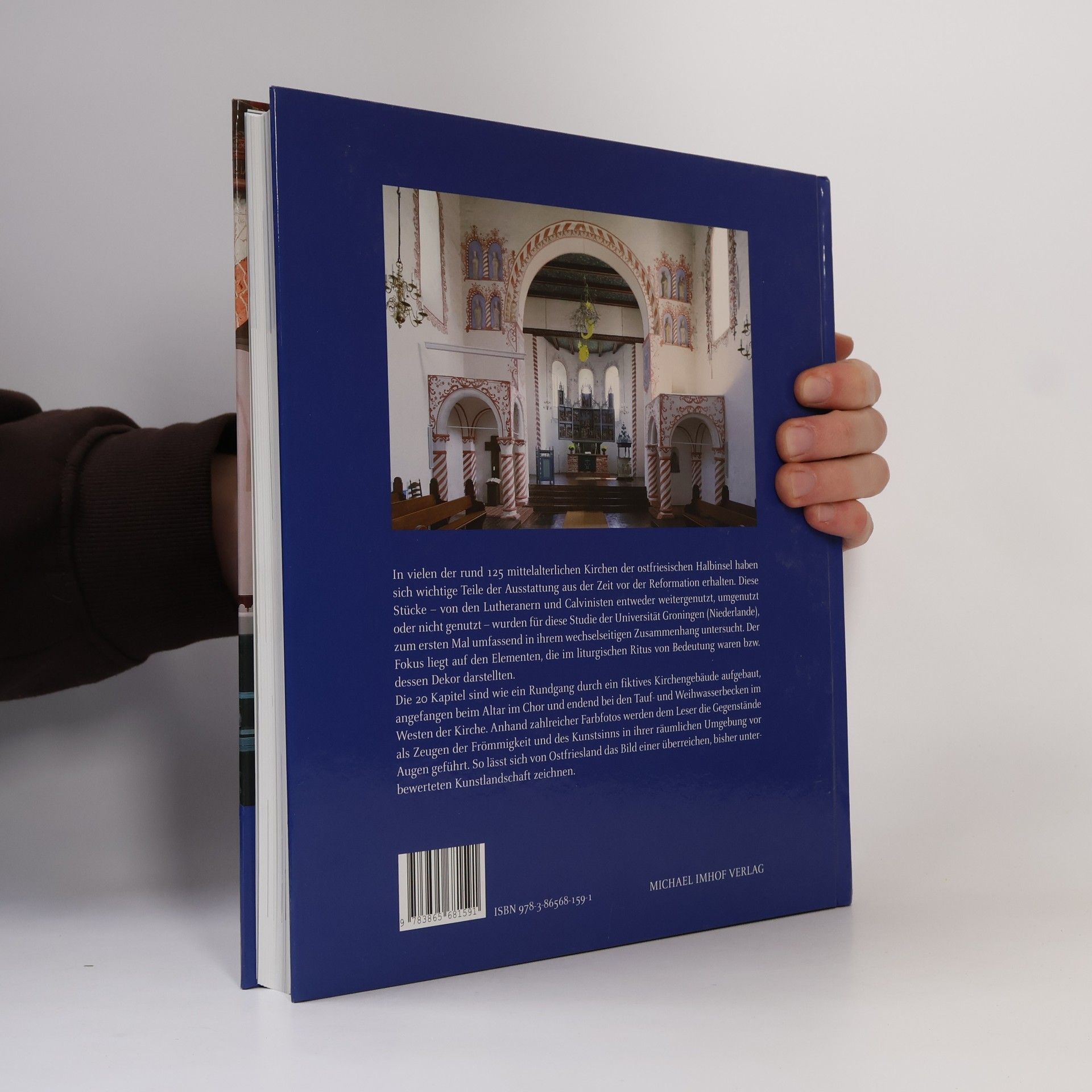 In vielen der rund 135 mittelalterlichen Kirchen der ostfriesischen Halbinsel haben sich wichtige Teile der Ausstattung aus der Zeit vor der Reformation erhalten. Diese Stücke - von den Lutheranern und Calvinisten entweder weitergenutzt, umgenutzt oder nicht genutzt - wurden für diese Studie der Universität Groningen (Niederlande), zum ersten Mal umfassend in ihrem wechselseitigen Zusammenhang untersucht. Der Fokus liegt auf den Elementen, die im liturgischen Ritus von Bedeutung waren bzw. dessen Dekor darstellten. Die 20 Kapitel sind wie ein Rundgang durch ein fiktives Kirchengebäude aufgebaut, angefangen beim Altar im Chor und endend bei den Tauf- und Weihwasserbecken im Westen der Kirche. Anhand zahlreicher Farbfotos werden dem Leser die Gegenstände als Zeugen der Frömmigkeit und des Kunstsinns in ihrer räumlichen Umgebung vor Augen geführt.