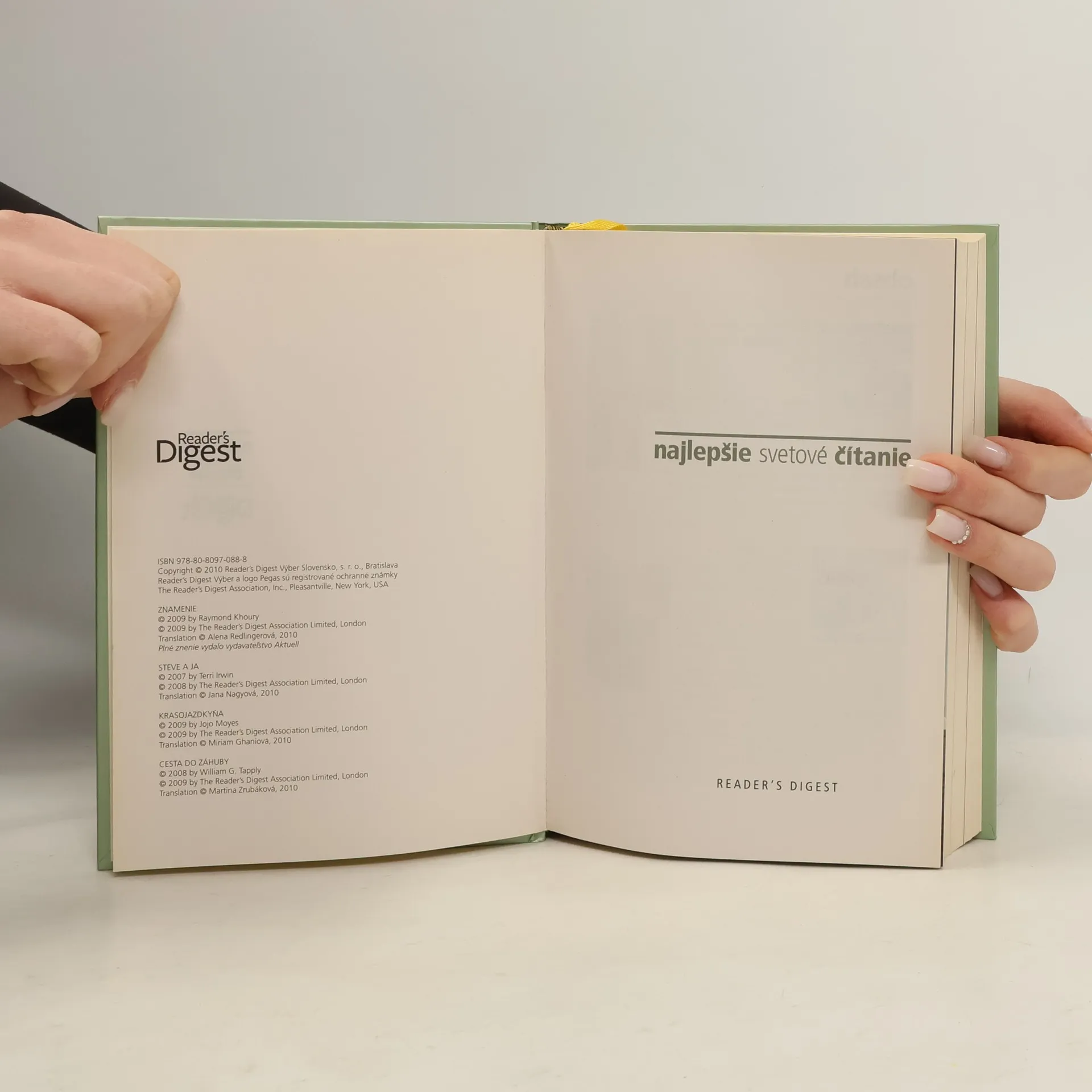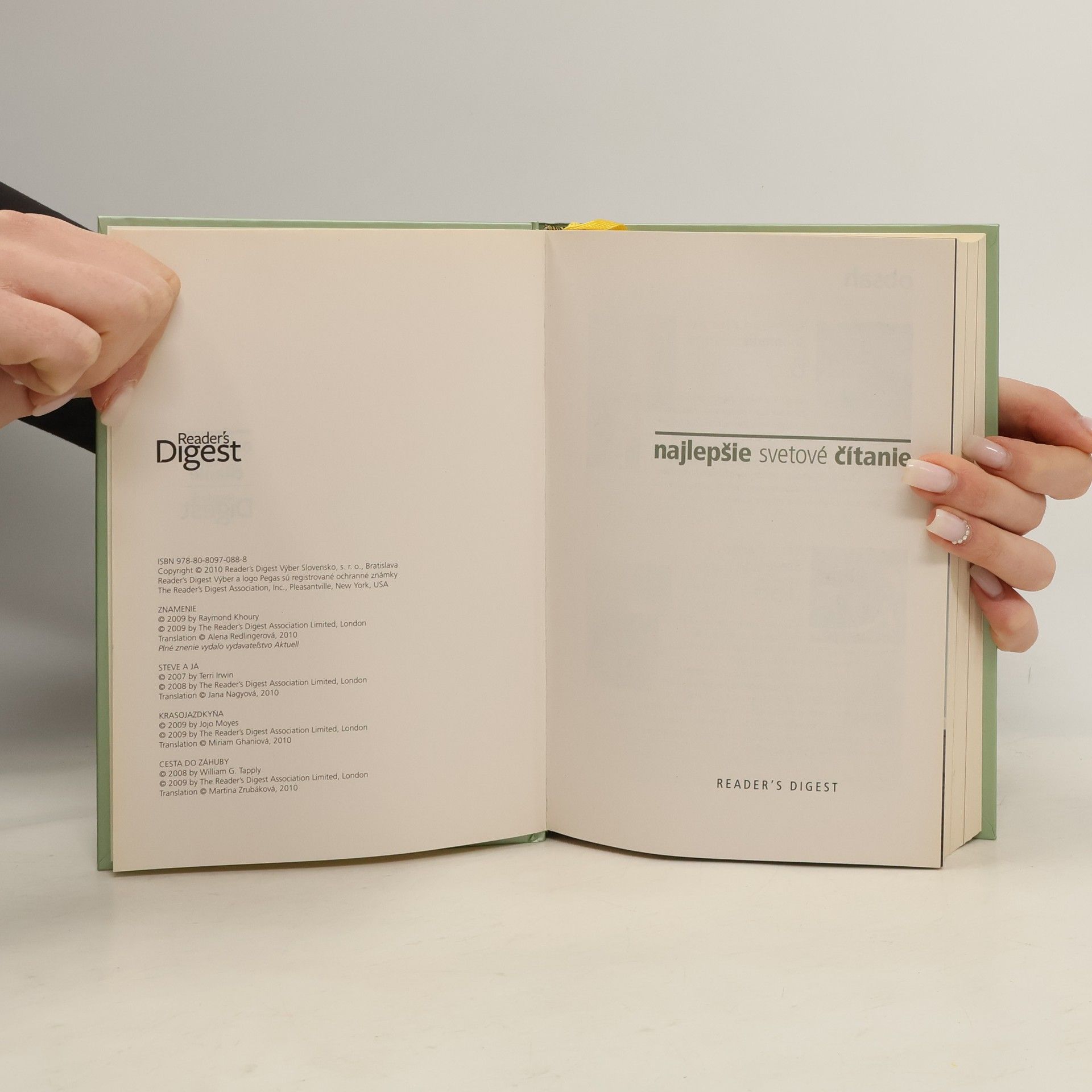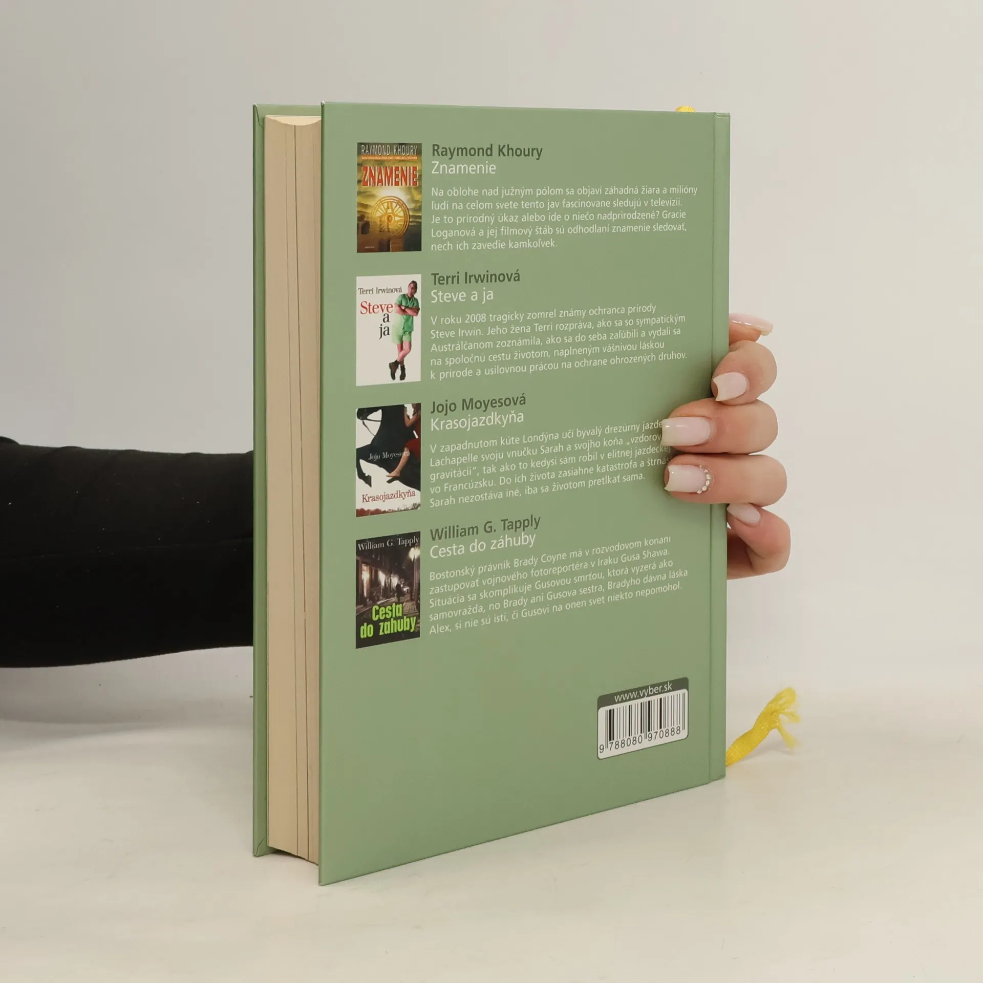 Raymond Khoury - Znamenie Na oblohe nad južným pólom sa objaví záhadná žiara a milióny ľudí na celom svete tento jav fascinovane sledujú v televízii. Je to prírodný úkaz alebo ide o niečo nadprirodzené? Gracie Loganová a jej filmový štáb sú odhodlaní znamenie sledovať, nech ich zavedie kamkoľvek.Terri Irwin - Steve a ja V roku 2006 tragický zomrel známy ochranca prírody Steve Irwin. Jeho žena Terri rozpráva, ako sa so sympatickým Austrálčanom zoznámila, ako sa do seba zaľúbili a vydali sa na spoločnú cestu životom, naplneným vášnivou láskou k prírode a usilovnou prácou na ochrane ohrozených druhov.Jojo Moyes - Krasojazdkyňa V zapadnutom kúte Londýna učí bývalý drezúrny jazdec Henri Lachapelle svoju vnučku Sarah a svojho koňa "vzdorovať gravitácii", tak ako to kedysi sám robil v elitnej jazdeckej škole vo Francúzsku. Do ich života zasiahne katastrofa a štrnásťročnej Sarah nezostáva iné, iba sa so životom pretĺkať sama.William G. Tapply - Cesta do záhuby Bostonský právnik Brady Coyne má v rozvodovom konaní zastupovať vojnového fotoreportéra v Iraku Gusa Shawa. Situácia sa skomplikuje Gusovou smrťou, ktorá vyzerá ako samovražda, no Brady ani Gusova sestra, Bradyho dávna láska Alex, si nie sú istí, či Gusovi na onen svet niekto nepomohol.