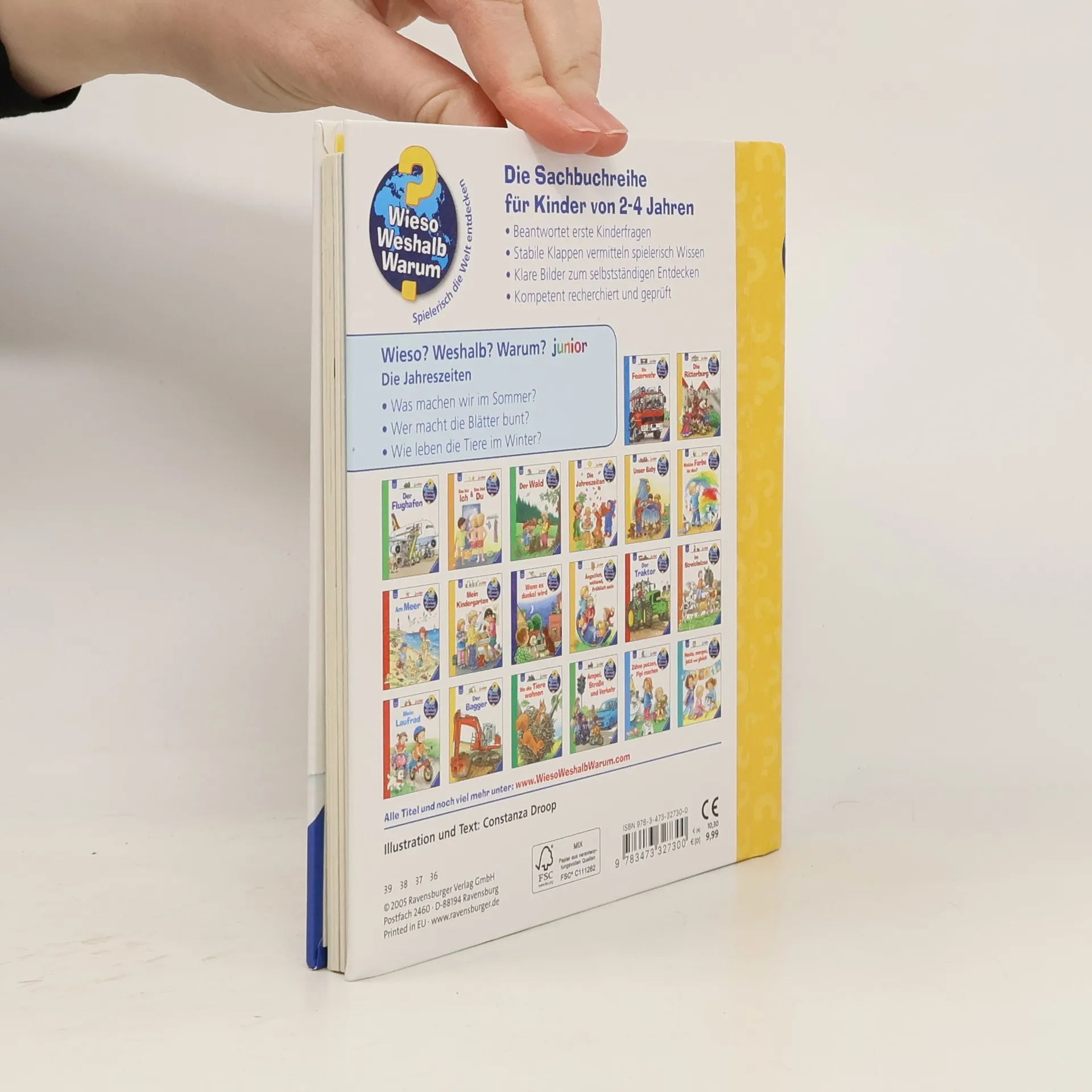 Ob Frühling, Sommer, Herbst oder Winter – jede Jahreszeit hat ihren Zauber. Doch warum wechseln die Jahreszeiten? Welche Beeren pflücken wir im Sommer? Was machen Tiere im Winter? Antworten und überraschende Klappen finden Kinder in diesem Buch. Sie erfahren, wie sich ein Apfelbaum im Jahreslauf verändert und wie wir uns passend zur Jahreszeit anziehen. Eine bunte Drehscheibe zeigt, welche Monate zu welcher Jahreszeit gehören. Die Sachbuchreihe richtet sich an Kinder von 2-4 Jahren und beantwortet ihre vielen Fragen auf Augenhöhe. Themen wie die Feuerwehr, das Verhalten von Tieren im Winter oder die Notwendigkeit des Zähneputzens werden altersgerecht und mit viel Liebe zum Detail beleuchtet. Die Reihe ist speziell für kleine Hände und die Bedürfnisse der Kleinsten konzipiert. Klare, liebevolle Bilder, kurze Sachtexte und handliche Klappen, die Bewegungen veranschaulichen und überraschende Einblicke gewähren, ermöglichen es Kindern, ihre Themen selbst zu erkunden. Der Spaß am eigenhändigen Entdecken, die liebevolle Umsetzung und die hochwertige Ausstattung garantieren langanhaltende Freude an jedem Buch.
