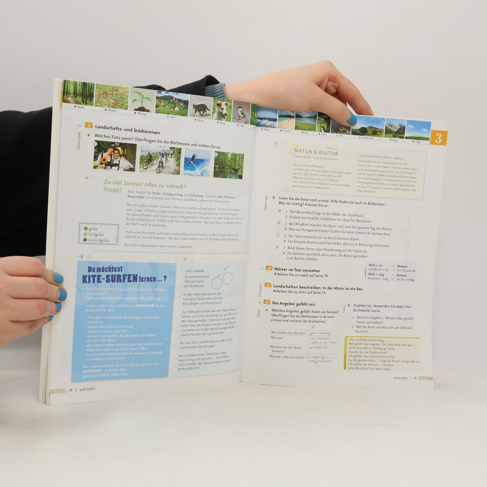 Zielniveau A2.1: Die Lektionen sind klar strukturiert und bestehen aus vier Seiten. Jede Lektion beginnt mit einer interessanten Einstiegssituation, oft kombiniert mit einem Hörtext, der Emotionen weckt und das Interesse an der Thematik fördert. Auf der folgenden Doppelseite werden neue Wortfelder, Strukturen und Redemittel anhand authentischer Lese- und Hörtexte eingeführt und geübt. Das Wortfeld wird in der Kopfzeile als Bildlexikon präsentiert, um das Einprägen zu erleichtern. Die Abschlussseite bietet Schreib- und Sprechtraining oder Mini-Projekte, die den Lektionsstoff aufgreifen und wichtige Wendungen übersichtlich zusammenfassen. Ein Update zur Behebung des Problems ist unter https://go.hueber.de/aktuell verfügbar.