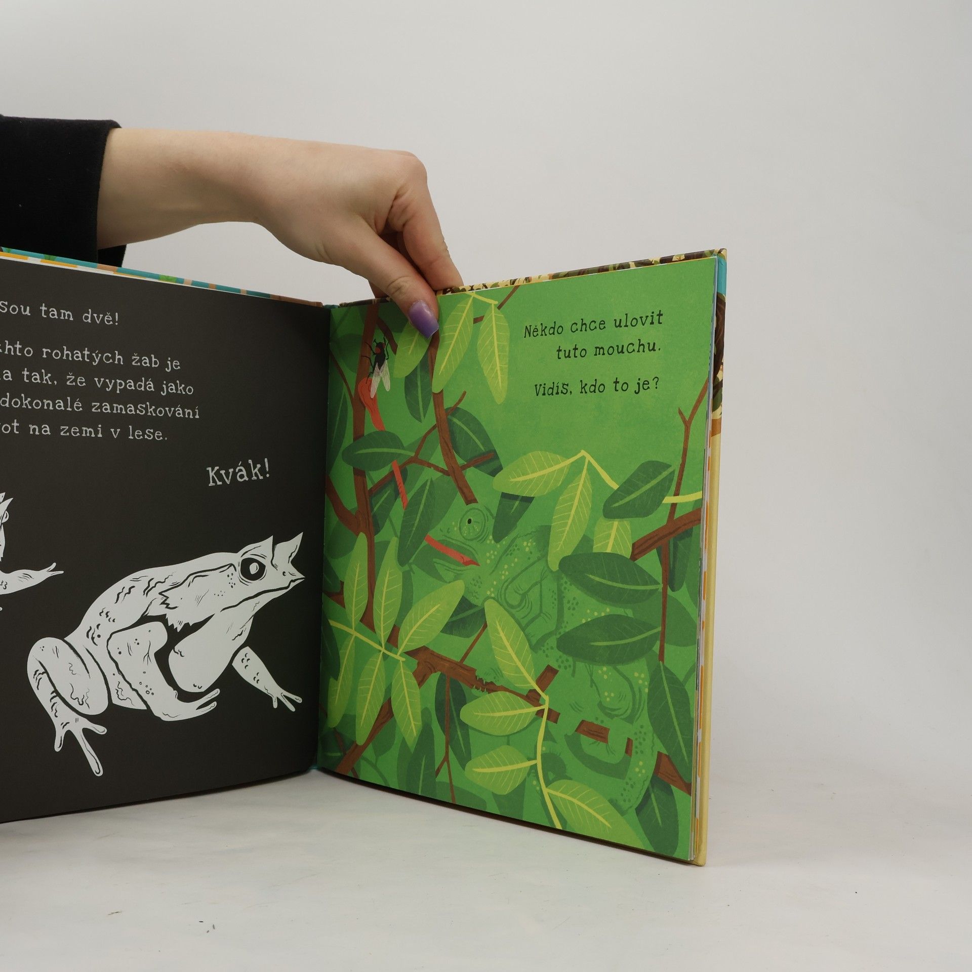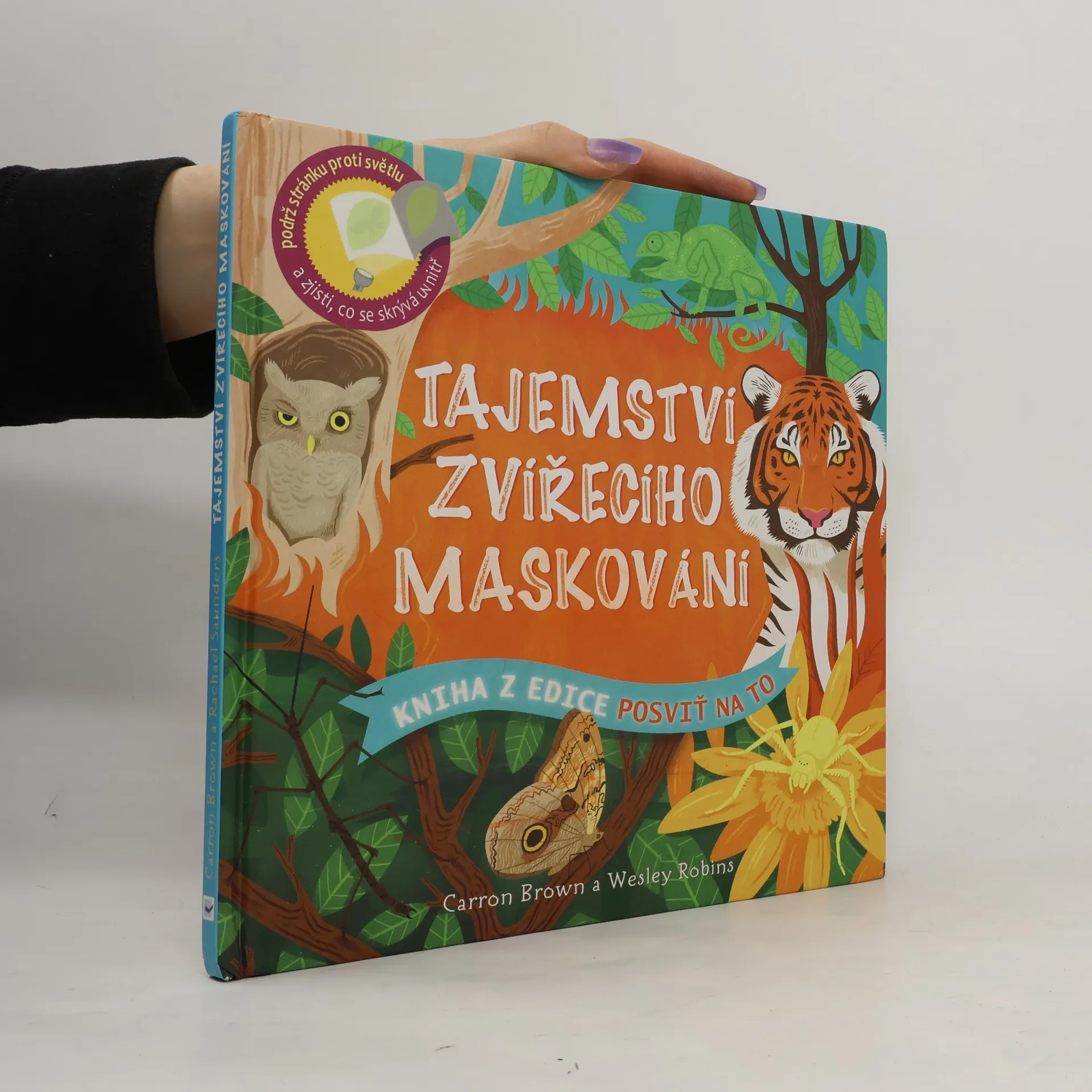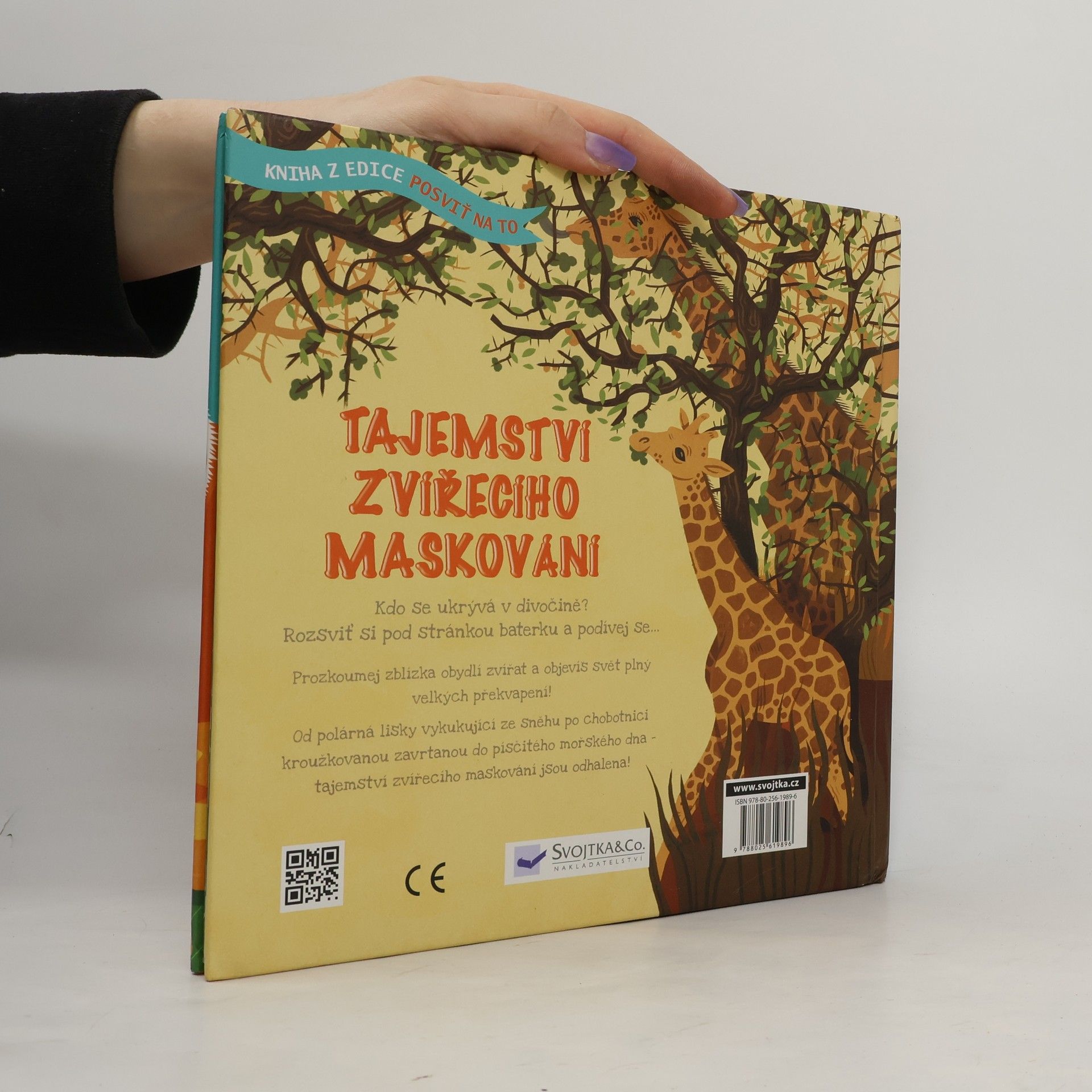 Kdo všechno se ukrývá v divočině? Která zvířata jsou šampioni v maskování? Když podržíš stránku proti světlu, objevíš svět plný překvapení. do se ukrývá v divočině? Rozsviť si pod stránkou baterku nebo přidrž knihu proti světlu a podívej se… Díky této interaktivní knížce zblízka prozkoumáš obydlí zvířat a objevíš svět plný velkých překvapení! Navštívíš důmyslně ukrytá doupata, budeš pozorovat predátory chystající se k útoku, seznámíš se s chováním mnoha tvorů ze zvířecí říše. Od polární lišky vykukující ze sněhu po chobotnici kroužkovanou zavrtanou do písčitého mořského dna – žádná tajemství zvířecího maskování ti nezůstanou skryta! Připrav si baterku, tvá dobrodružná cesta za poznáním právě začíná.