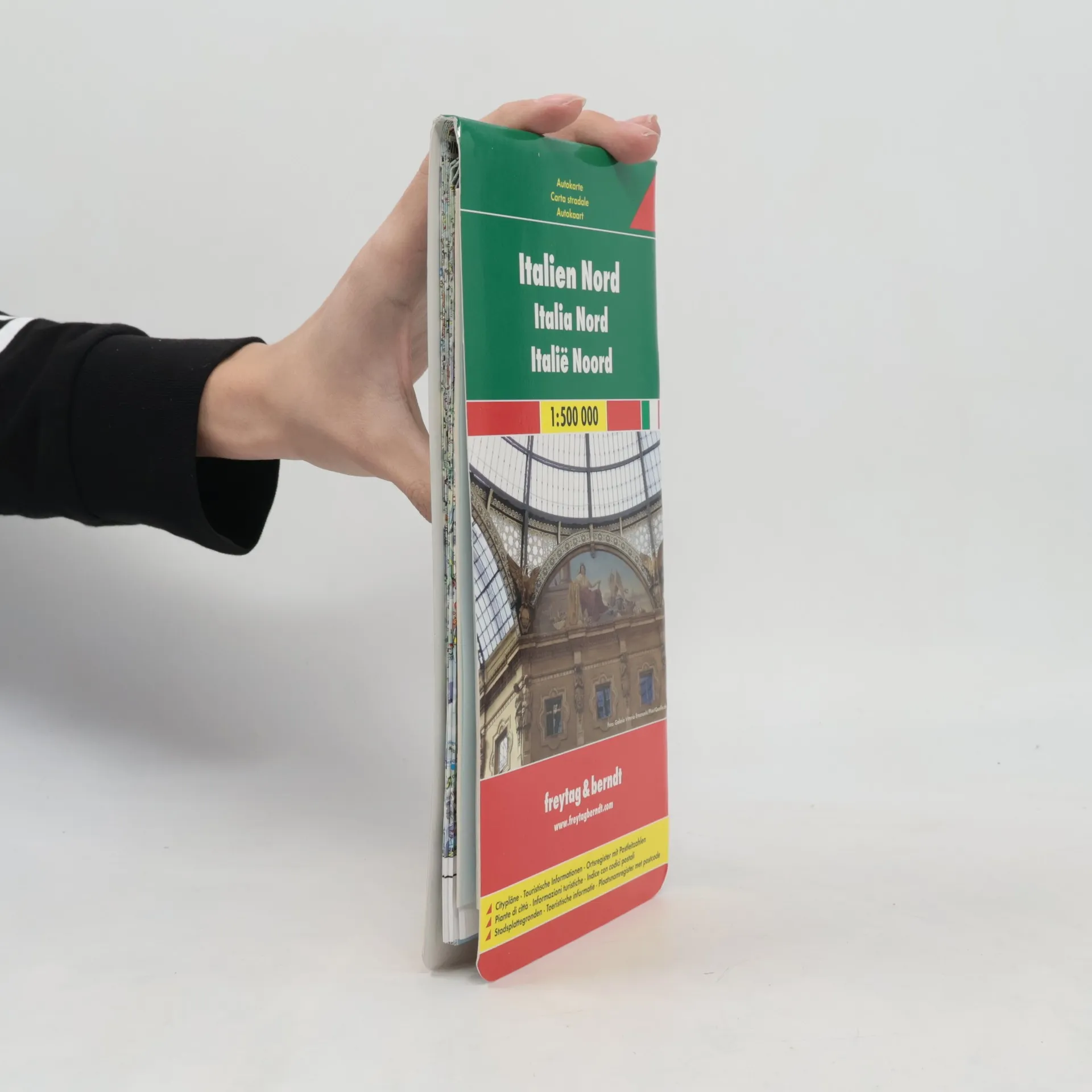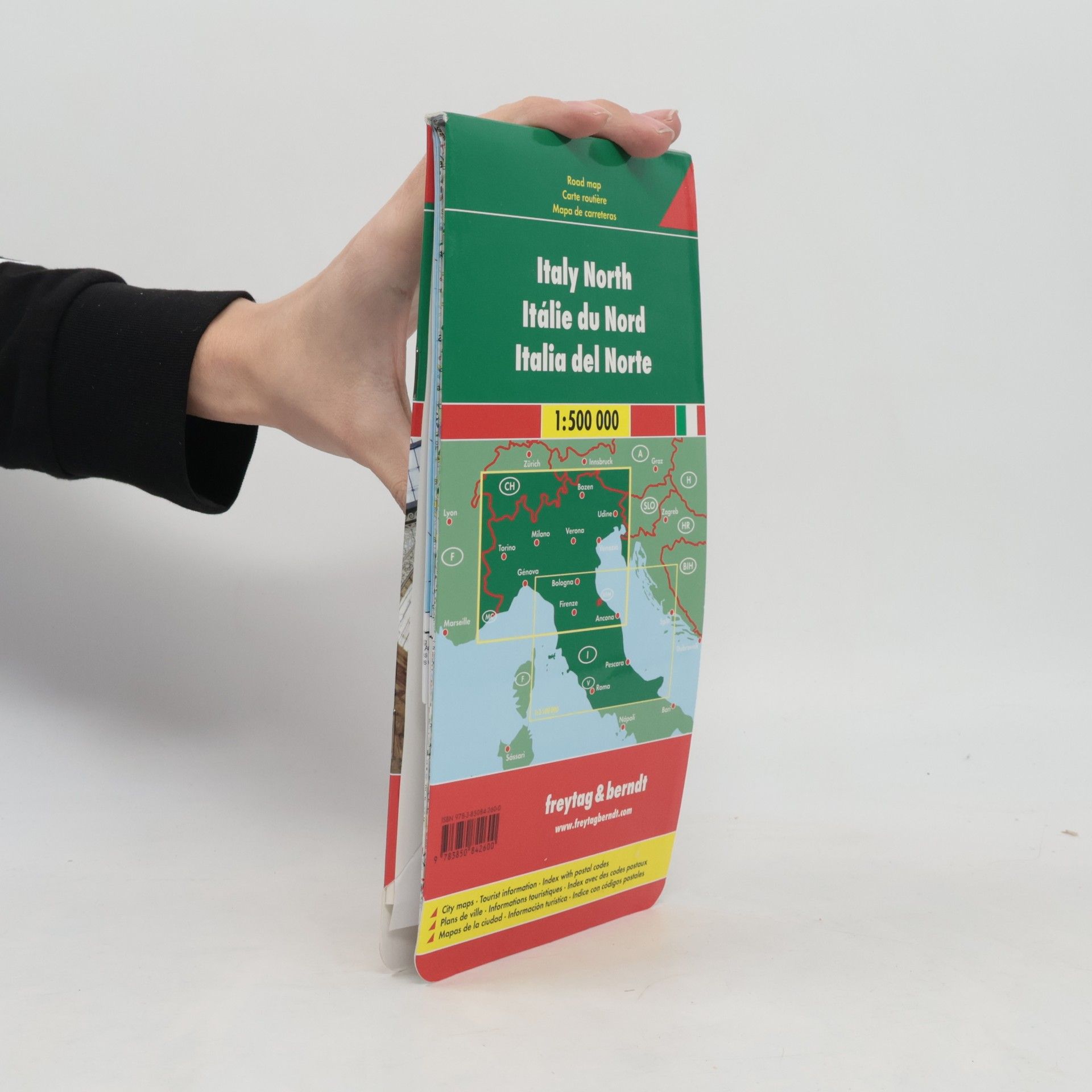 Podrobná silniční mapa severní Itálie v měřítku 1:500 000 (1 až 8 mil). Pro zvýraznění reliéfu země se používá stínování. Jsou zobrazeny vybrané nadmořské výšky a vzdálenosti. Jižní hranice mapy je trochu jižně od Sieny. Je zde vložka střední Itálie ukazující hlavní dálnice mezi Ravennou a Foggia v měřítku 1:3 500 000 (1 až 55 mil). Jsou nastíněny země Monako a San Marino. K dispozici je připojený rejstřík s plány centra měst Ancona, Bolzano/Bozen, Firenze (Florencie), Genova (Janov), Roma (Řím), Turín (Turín) a Venezia (Benátky). Legenda je v angličtině, italštině, francouzštině a němčině.