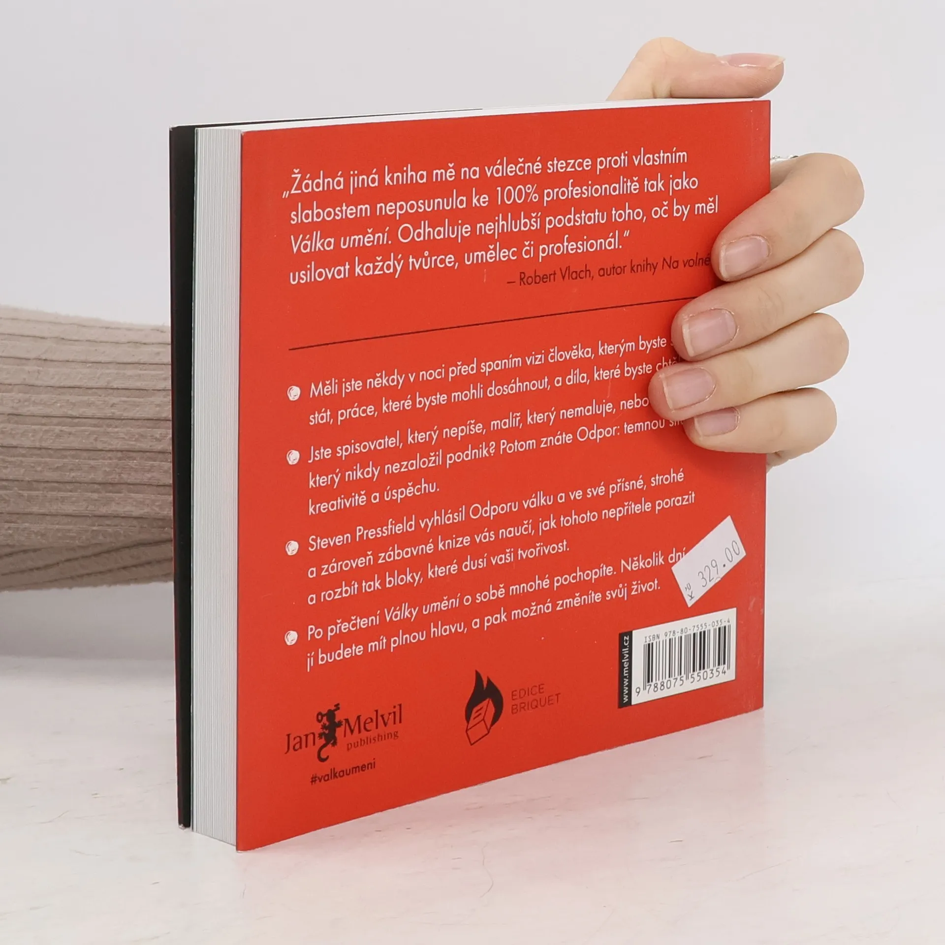 Stručný, poutavý a praktický návod k úspěchu v jakékoli tvůrčí sféře. Válka umění by se dala bez nadsázky popsat jako Sun-c' pro duši. Co mnoha z nás brání dělat to, co dělat toužíme? Jak se můžeme vyhnout blokům při jakémkoli tvůrčím počinu, ať už chceme založit vysněnou firmu, napsat román nebo namalovat mistrovské dílo? Autor mnoha románových bestsellerů Steven Pressfield odhaluje nepřítele, kterému čelí každý z nás, nastiňuje bitevní plán ke zdolání vnitřního nepřítele a nakonec zdůrazňuje jednotlivé kroky k dosažení největšího úspěchu. Válka umění klade důraz na odhodlání potřebné k odhalení a překonání překážek v cestě našich ambicí a pak názorně ukazuje, jak dosáhnout nejvyšší úrovně tvůrčí disciplíny. Uvažujte nad tím jako nad drsnou láskou... k obě sama. Ať už jste umělci, spisovatelé nebo podnikatelé, tato prostá, osobní a smysluplná kniha vás inspiruje k využití svého životního potenciálu.