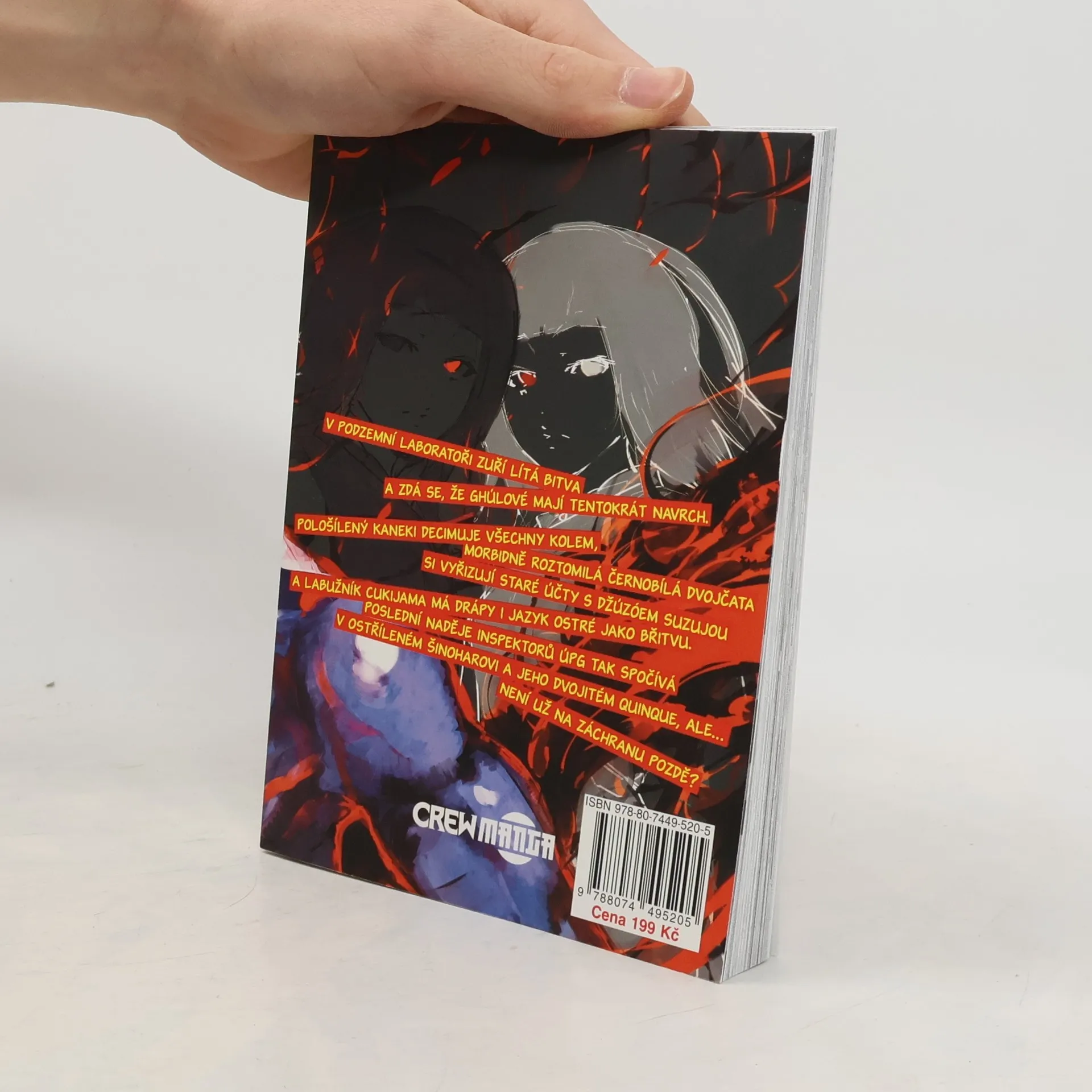 V podzemní laboratoři zuří lítá bitva a zdá se, že ghúlové mají tentokrát navrch. Pološílený Kaneki decimuje všechny kolem, morbidně roztomilá černobílá dvojčata si vyřizují staré účty s Džúzóem Suzujou a Labužník Cukijama má drápy i jazyk ostré jako břitvu. Poslední naděje inspektorů ÚPG tak spočívá v ostříleném Šinoharovi a jeho dvojitém quinque, ale... není už na záchranu pozdě?