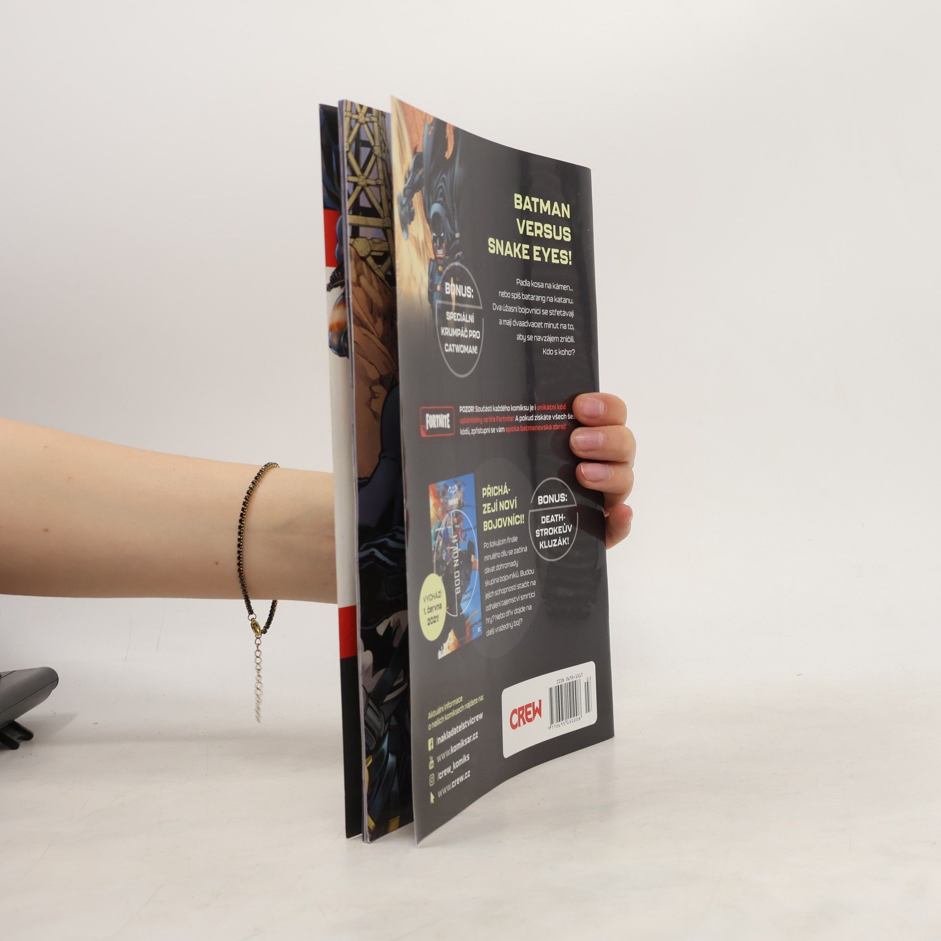 Batman versus Snake Eyes! Padla kosa na kámen... nebo spíš batarang na katanu. Dva úžasní bojovníci se střetávají a mají dvaadvacet minut na to, aby se navzájem zničili. Kdo s koho? POZOR! Součástí každého komiksu je i unikátní kód uplatnitelný ve hře Fortnite! Zde je to speciální krumpáč pro... číst celé