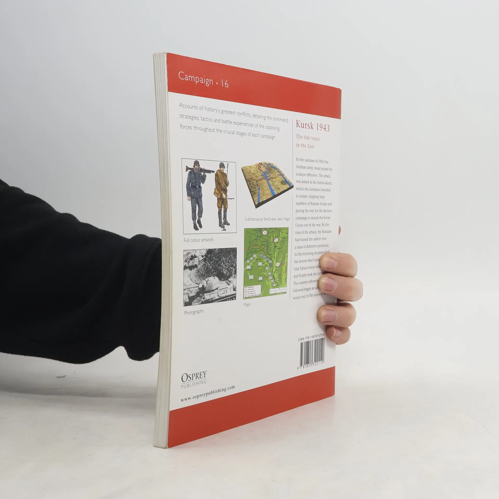 Osprey's examination of the Kursk campaign of World War II (1939-1945). In the summer of 1943 the German army stood poised for a major offensive. The attack was aimed at the Kursk salient, which the Germans intended to isolate, trapping large numbers of Russian troops and paving the way for the decisive campaign to knock the Soviet Union out of the war. By the time of the attack, the Russians had turned the salient into a mass of defensive positions. In the following decisive clash, the Soviets bled Germany's vital Panzer forces white and finally took the initiative. The counter-offensive which followed began an advance that would end in the ruins of Berlin.