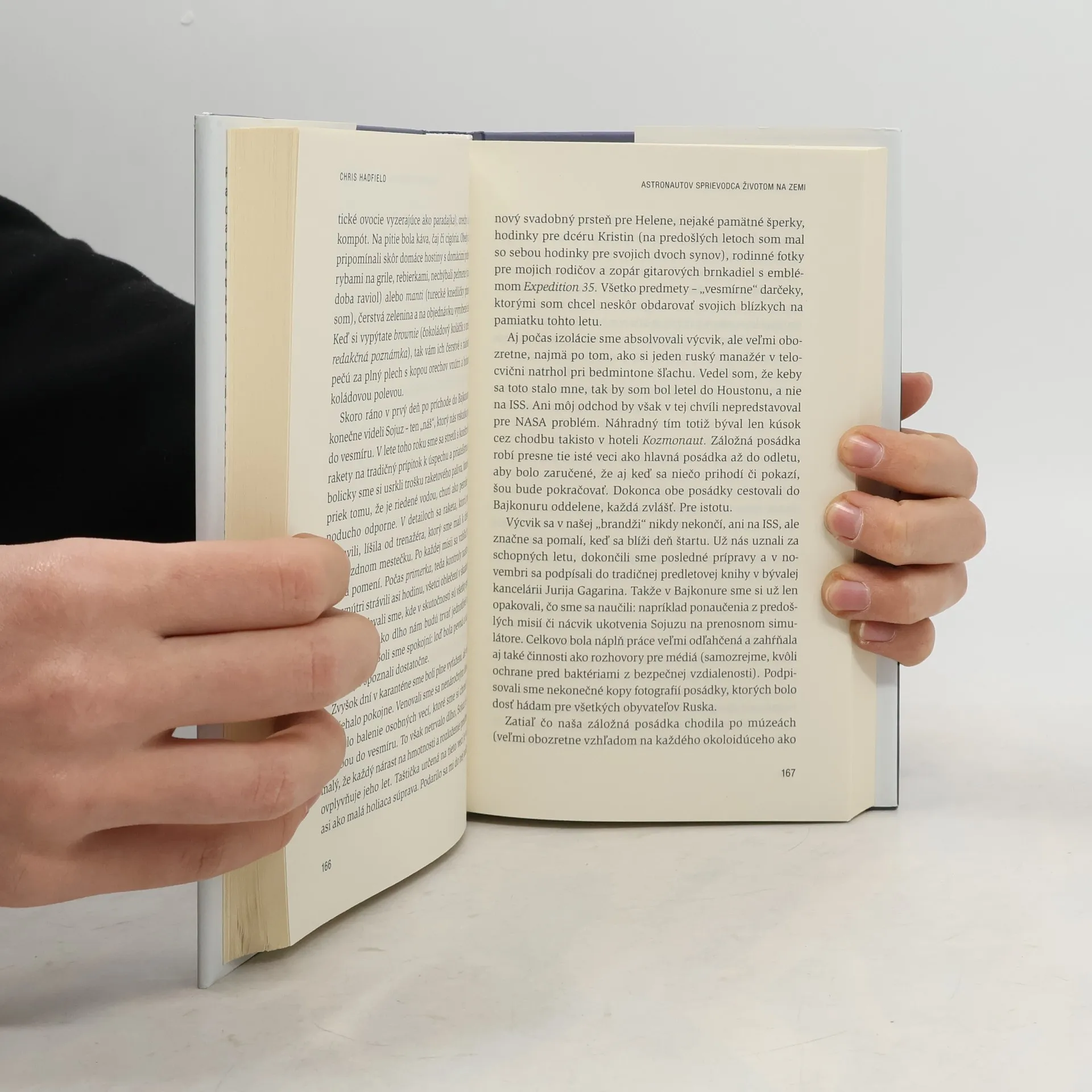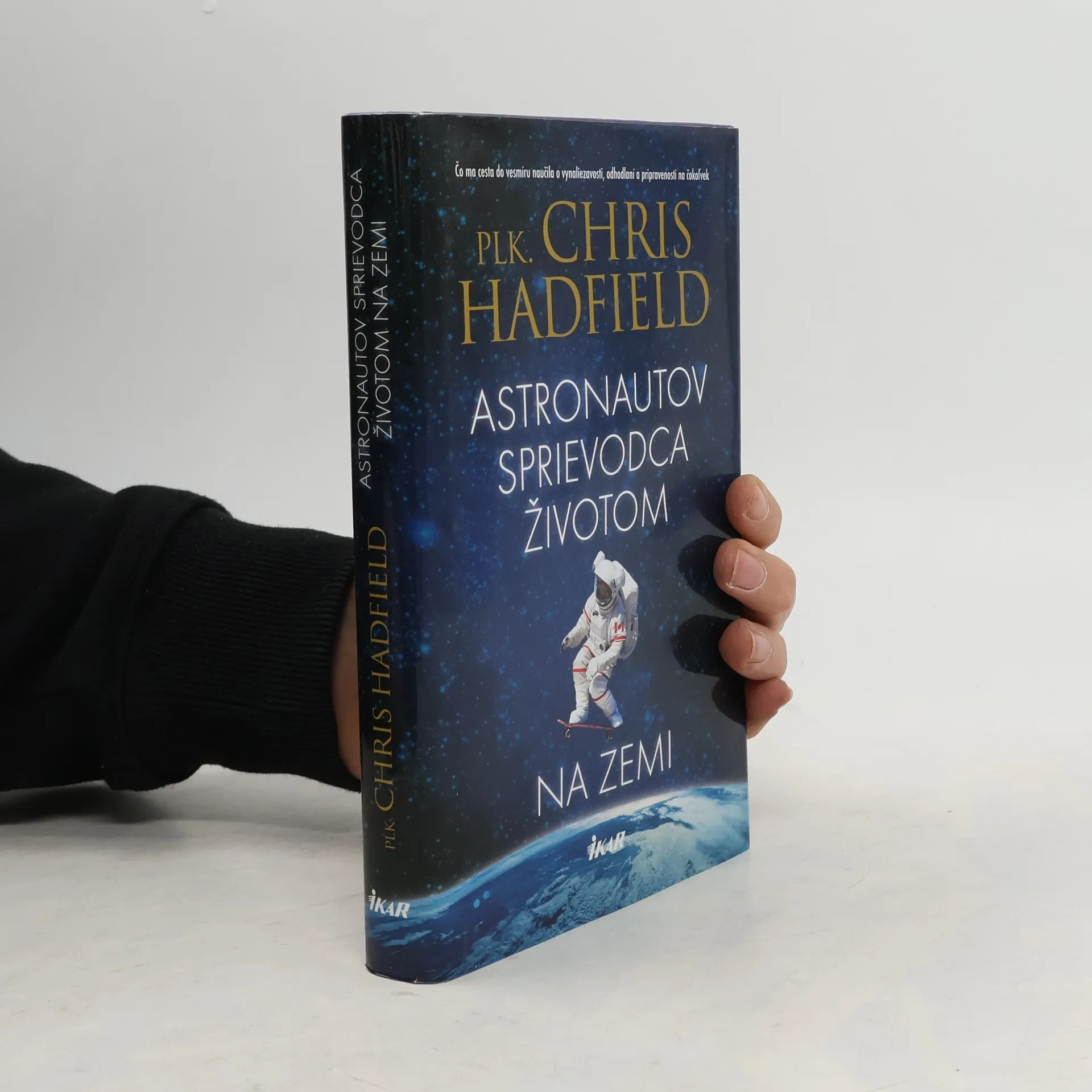 Plukovník Chris Hadfield strávil celé desaťročia astronautickým výcvikom a takmer štyritisíc hodín pobudol vo vesmíre. Pomocou švajčiarskeho armádneho noža sa vlámal do vesmírnej stanice, počas pilotovania lietadla sa zbavil živého hada a pri pobyte v exteriéri vesmírnej lode dočasne oslepol. Tajomstvom úspechu plk. Chrisa Hadfielda – a tajomstvom prežitia – je jeho osobitá filozofia, ktorú si osvojil v NASA: Pripravte sa na najhoršie – a vychutnávajte si z toho každý moment. V knihe Astronautov sprievodca životom na zemi plukovník Hadfield zasvätí čitateľov do tajov svojho dlhoročného výcviku a objavovania vesmíru. Ukáže, ako sa dá urobiť z nemožného možné. Cez pútavé a zábavné príbehy, ktoré opisujú vzrušenie pri štarte, fascinujúce čaro pohybu vo vesmíre a premyslené, uvážené reakcie v krízových situáciách vysvetľuje, ako sa môže konzervatívne myslenie postaviť do cesty úspechu – a radosti. Vďaka bohatým skúsenostiam vo vesmíre si osvojil niekoľko ponaučení do života, ktoré odporúča čitateľom: nepredstavujte si úspech, zaujímajte sa o to, čo si myslia ostatní, a vždy sa sústreďte na maličkosti. Možno sa vám nikdy nepodarí zostrojiť robota, pilotovať raketoplán, nakrútiť hudobný klip alebo vykonať základnú operáciu v nulovej gravitácii ako plukovníkovi Chrisovi Hadfieldovi. Jeho živé a originálne náhľady vás naučia myslieť ako astronaut a úplne zmenia vaše vnímanie života na zemi – najmä toho svojho.