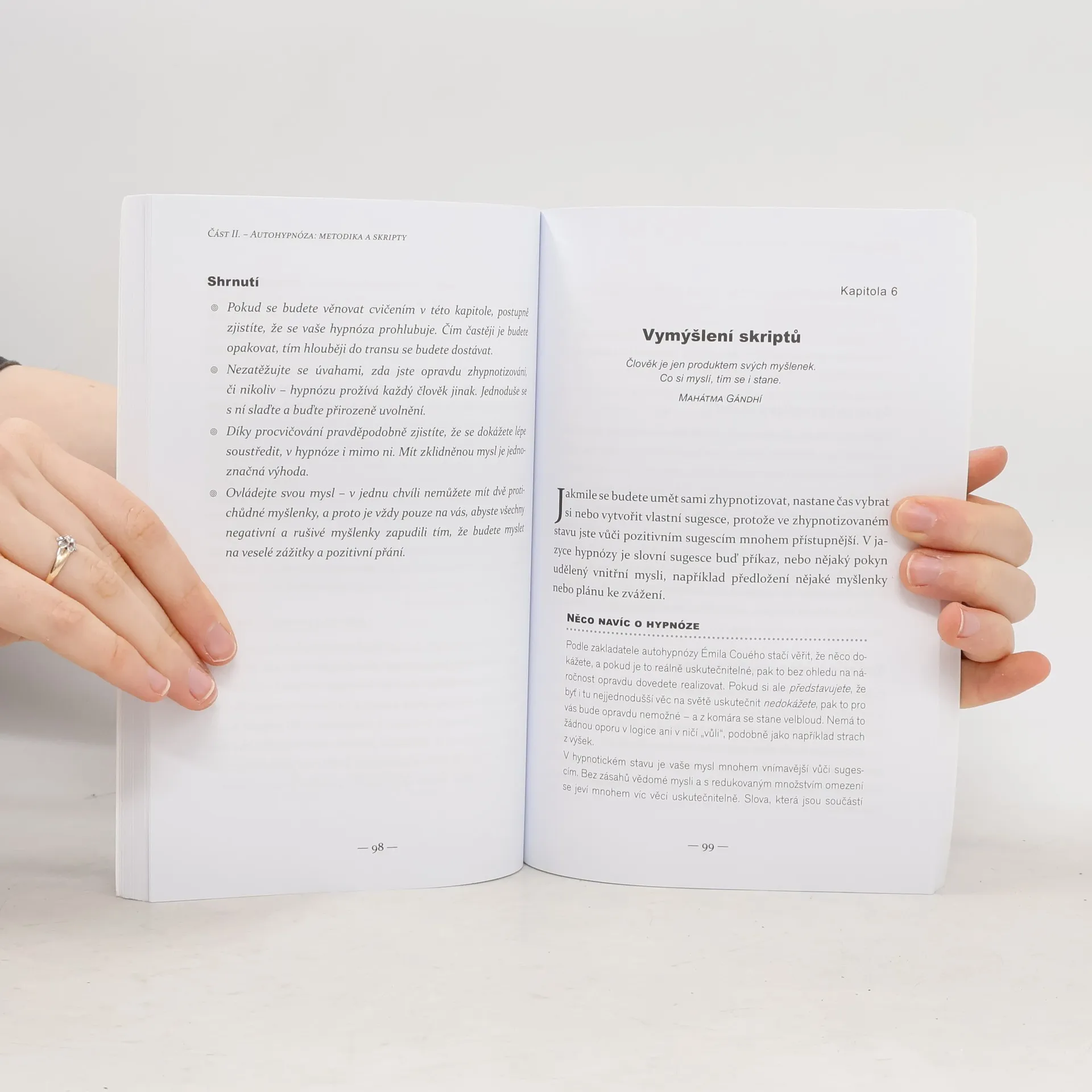Pomocí hlubokých hypnotických transů pracujte s vaší podvědomou myslí, abyste odstranili problémy a využili naplno svůj potenciál. Ponořte se do hlubokých hypnotických transů Autohypnóza může být skvělým nástrojem k překonání překážek v našem životě. Tato kniha vás naučí ponořit se do hlubokých hypnotických transů, zbavit se negativních myšlenek a chování a zlepšit všechny aspekty svého života, jež chcete změnit. Objevíte snadno proveditelné postupné techniky pro autohypnózu, praktické cviky, které pomáhají prohloubit hypnotický trans, ale také to, jak může hypnóza pomoci přestat kouřit, eliminovat fobie, snižovat váhu, zlepšit spánek a další. Dokonce se dozvíte, jak může hypnóza pomoci překonat závažná onemocnění. Pro koho je kniha určena Tato kniha je vynikajícím zdrojem pro zvládnutí autohypnózy pro úplné začátečníky i pro improvizátory
