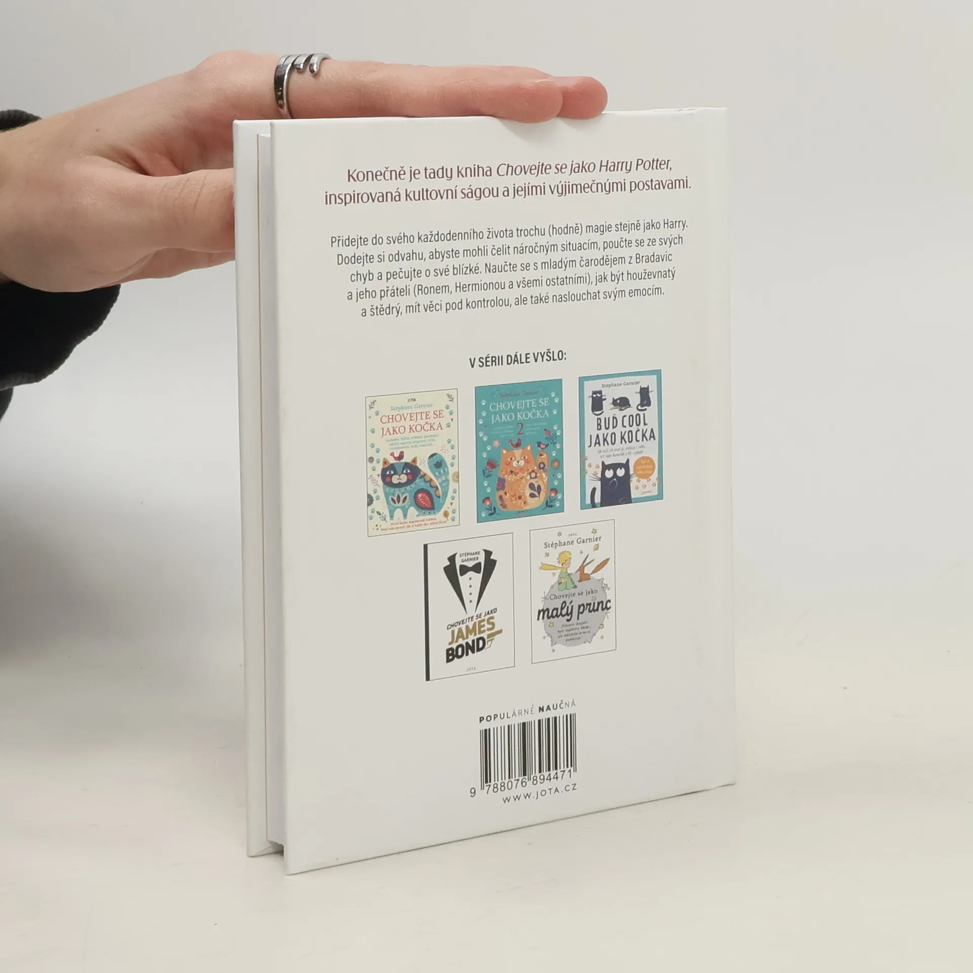Konečně je tady kniha Chovejte se jako Harry Potter, inspirovaná kultovní ságou a jejími výjimečnými postavami. Inspirujte se nejznámějšími čaroději! Přidejte do svého každodenního života trochu (nebo hodně) magie stejně jako Harry. Dodejte si odvahu, abyste mohli čelit náročným situacím, poučte se ze svých chyb a pečujte o své blízké. Naučte se s mladým čarodějem z Bradavic a jeho přáteli (Ronem, Hermionou a všemi ostatními), jak být houževnatý a štědrý, mít věci pod kontrolou, ale také naslouchat svým emocím. Představovat někomu mladého charismatického čaroděje s jizvou není nutné, je to ale poprvé, kdy se stane vaším životním koučem. Harry Potter jakožto pomník popkultury (sedm knih, osm filmů, spousta adaptací a z něj čerpajících dalších děl) je kultovním hrdinou, který konečně vstoupí i do vašeho života, aby vám pomohl překonat všechny, ať už mudlovské, nebo nemudlovské nástrahy!