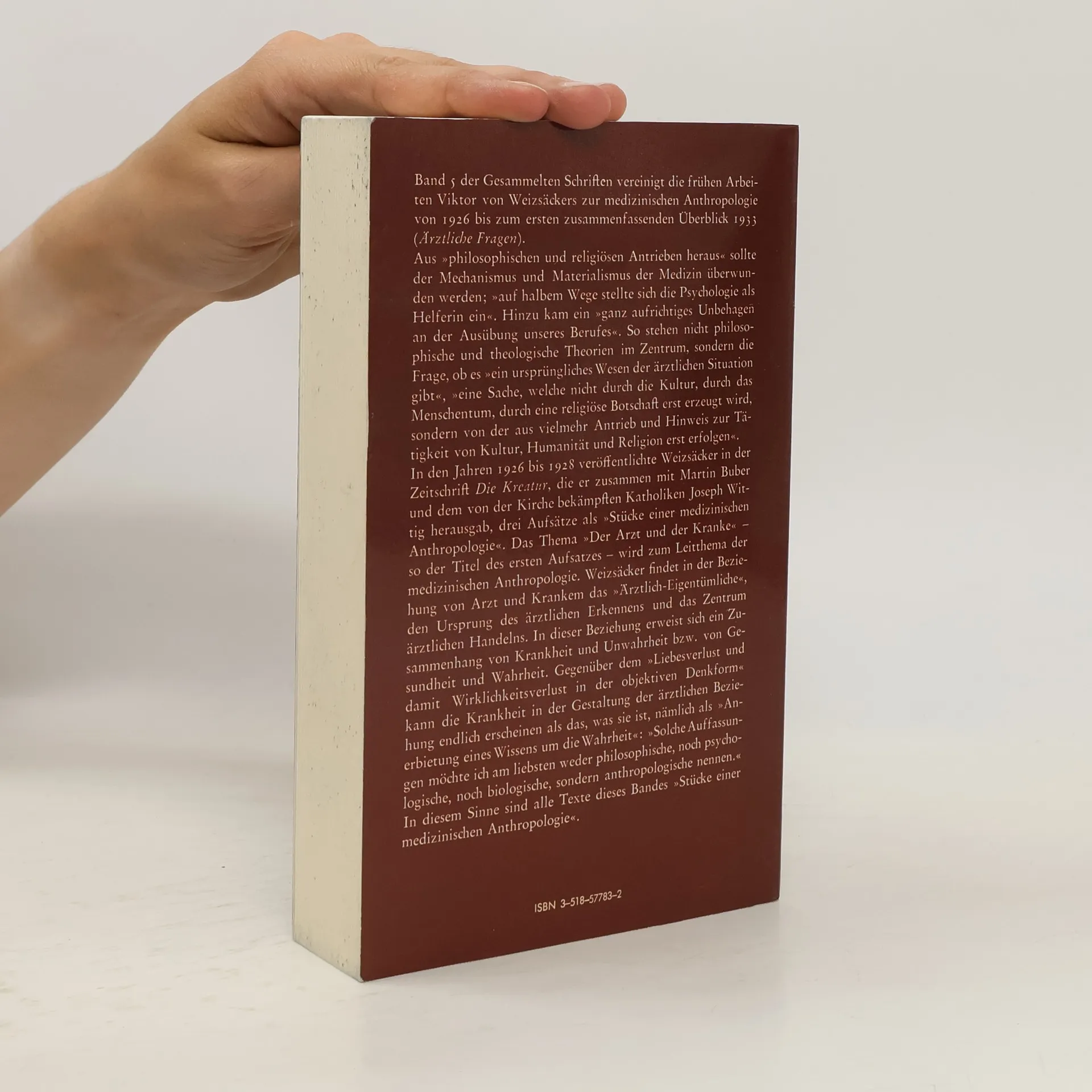 Gesammelte Schriften, in denen sich Viktor von Weizsäcker mit dem Arzt-Patient-Verhältnis aus philosophischer und psychoanalytischer Sicht auseinandersetzt. Dabei geht es auch um die Machtposition des Arztes und dessen daraus abzuleitende Verantwortung gegenüber den Kranken