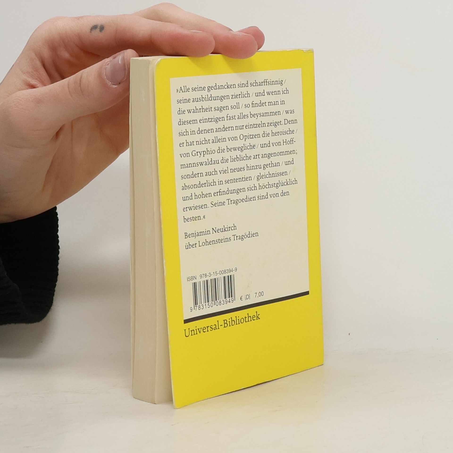 Daniel Casper von Lohensteins Trauerspiel "Sophonisbe" spielt im zweiten Punischen Krieg und thematisiert die Opferbereitschaft der Königin Sophonisbe, die bereit ist, ihr Leben und das ihrer Söhne für das Reich zu opfern. Die Neuausgabe enthält eine Biografie des Autors und basiert auf einer früheren Edition.