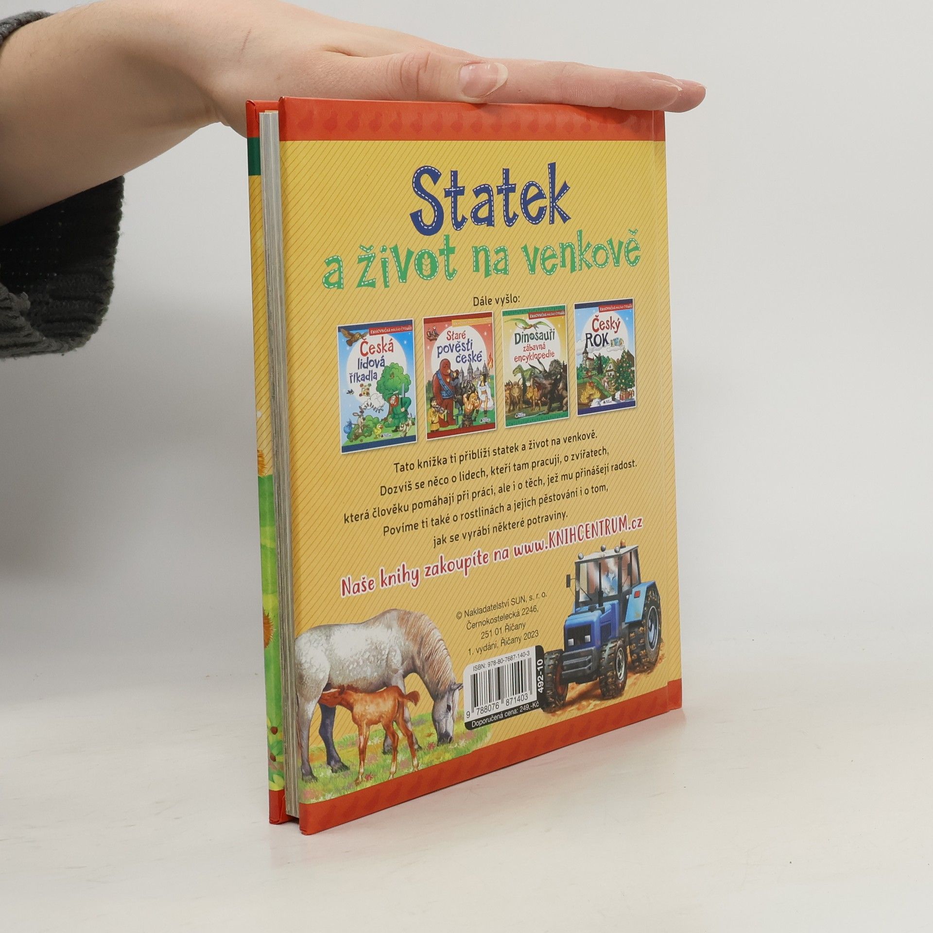 Tato knížka ti přiblíží statek a život na venkově. Dozvíš se něco o lidech, kteří tam pracují, o zvířatech, která člověku pomáhají při práci, ale i o těch, jež mu přinášejí radost. Povíme ti také o rostlinách a jejich pěstování i o tom, jak se vyrábí některé potraviny.