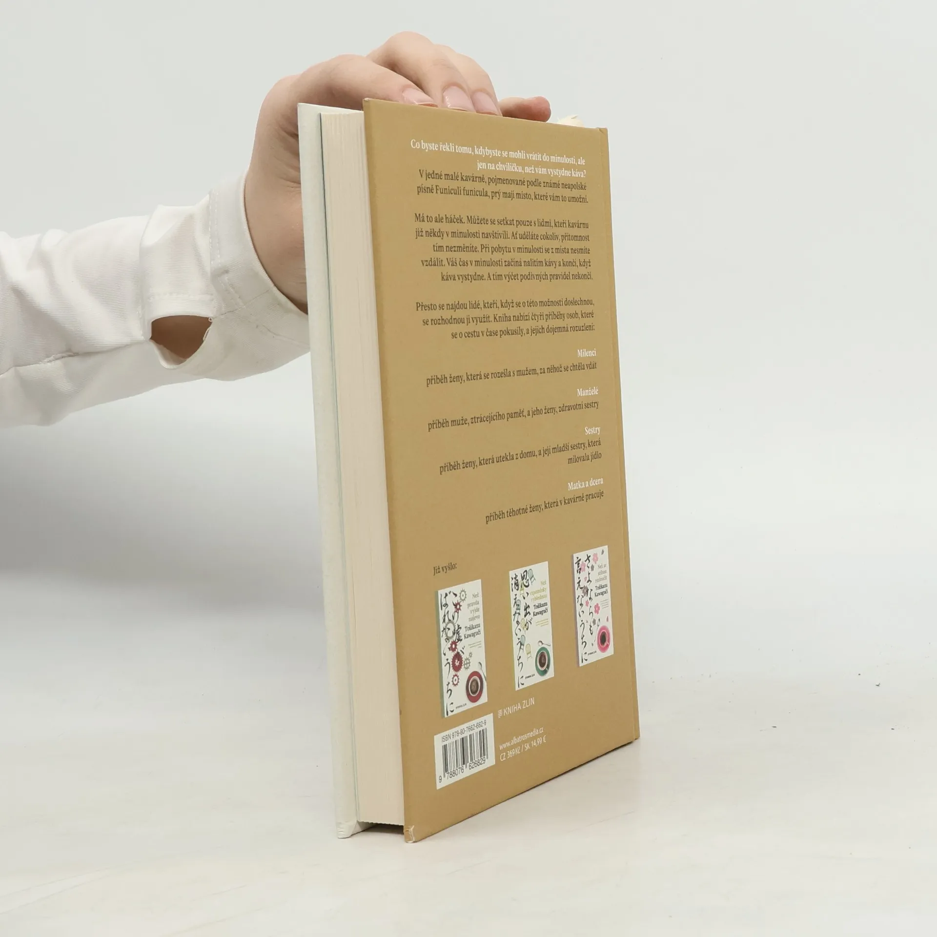 Malá japonská kavárna Funiculi funicula ukrývá nečekané tajemství. Jedno z jejích míst umožňuje hostům kavárny, vrátit se zpět do minulosti. Musí však dodržet určité podmínky. Přítomnost však nezmění a čas mají omezený – než jim vystydne káva. Možnosti využijí čtyři dvojice – milenci, manželé, sestry a matka s dítětem. A právě jejich příběhy kniha vypráví a přináší dojemná rozuzlení jejich životních osudů.