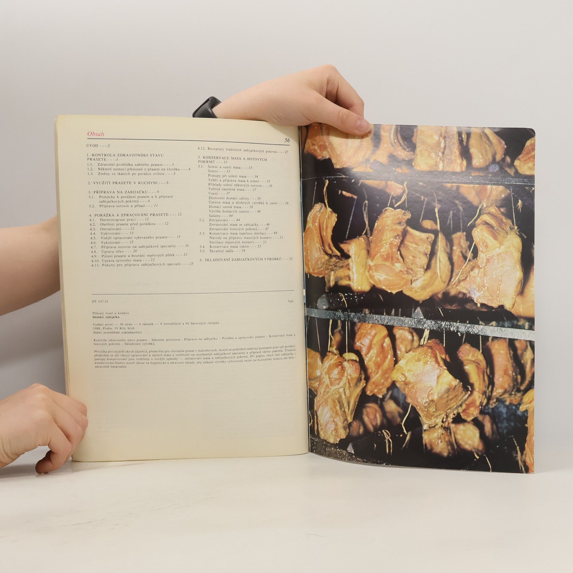 Příručka pro nejširší okruh zájemců. Autoři se podrobně zabývají postupem prací při porážce, především se ale věnují zpracování a úpravě masa a vnitřností na nejrůznější zabijačkové speciality a přípravě těchto pokrmů.