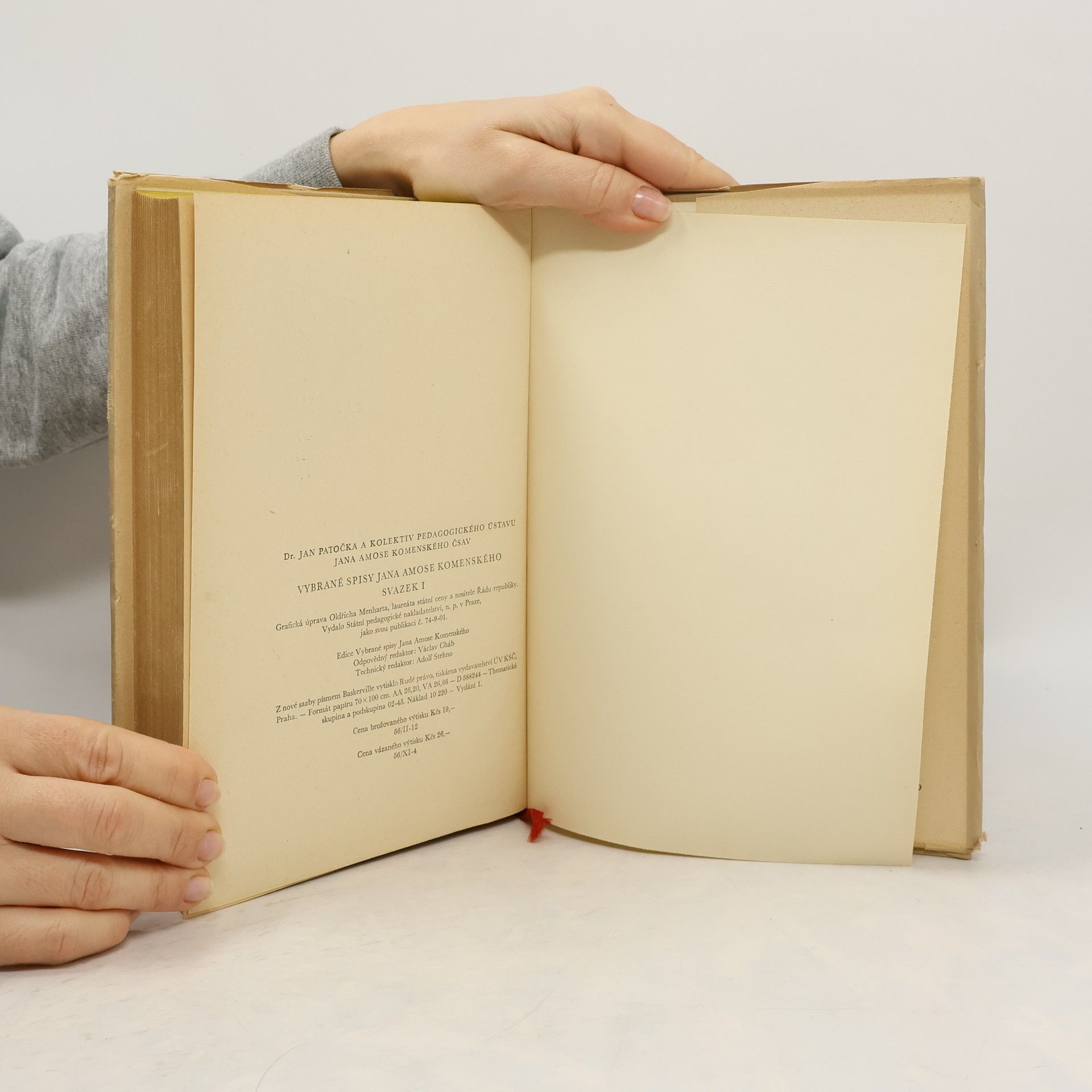 Skladem máme celkem knihy Vybrané spisy Jana Amose Komenského. Svazek I (1958).