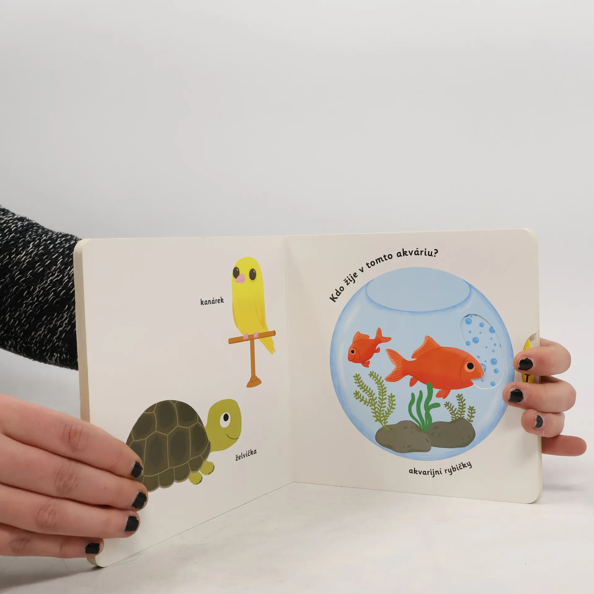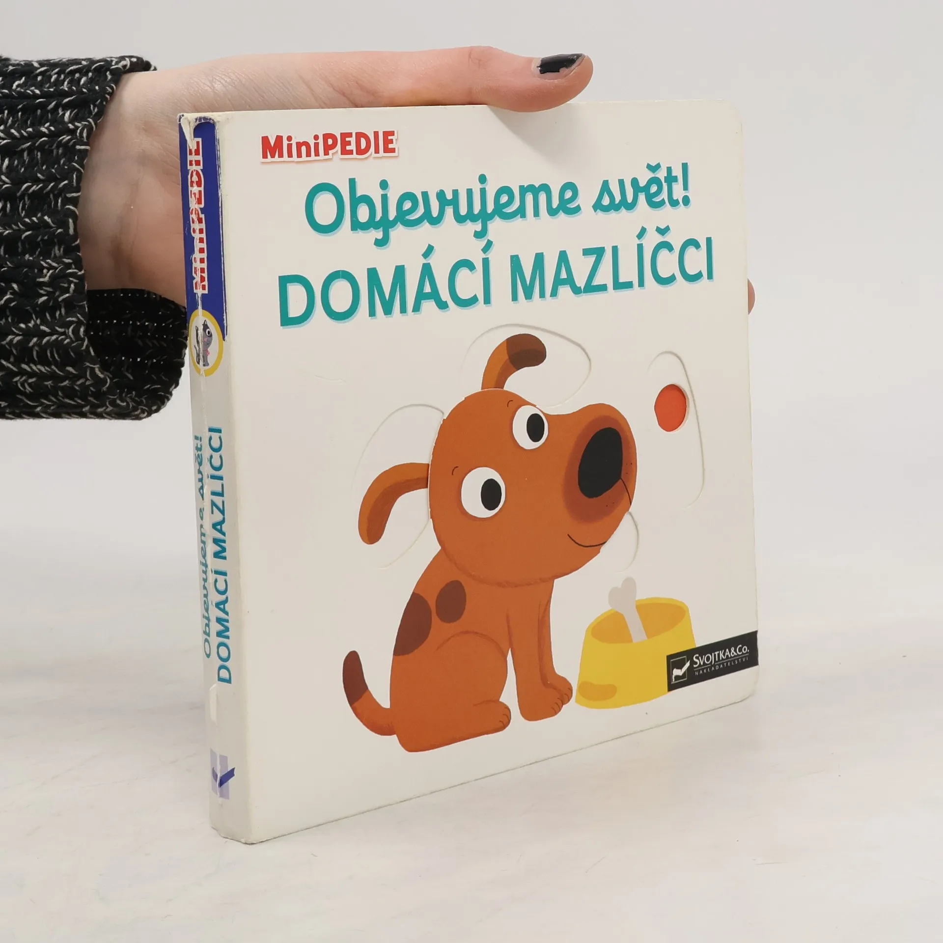 Objevovat svět zvířátek a domácích mazlíčků je s tímto leporelem tak zábavné! Kdo si hraje s klubíčkem vlny? Kdo žije v tomto akváriu? Kdo si hraje v psí boudě? Kdo běhá v kolečku? Pojmenuj zvířátka a ukaž, které máš nejraději! Stačí jen vložit prstík do správného otvoru, lehce posunout nebo otočit ve směru šipky a hned bude váš malý objevitel nebo objevitelka znát odpovědi. Leporelo je určeno pro nejmenší děti od jednoho roku a má pevné stránky s posuvnými prvky, a tak si naši nejmenší mohou při prohlížení a pojmenovávání procvičit i jemnou motoriku.
