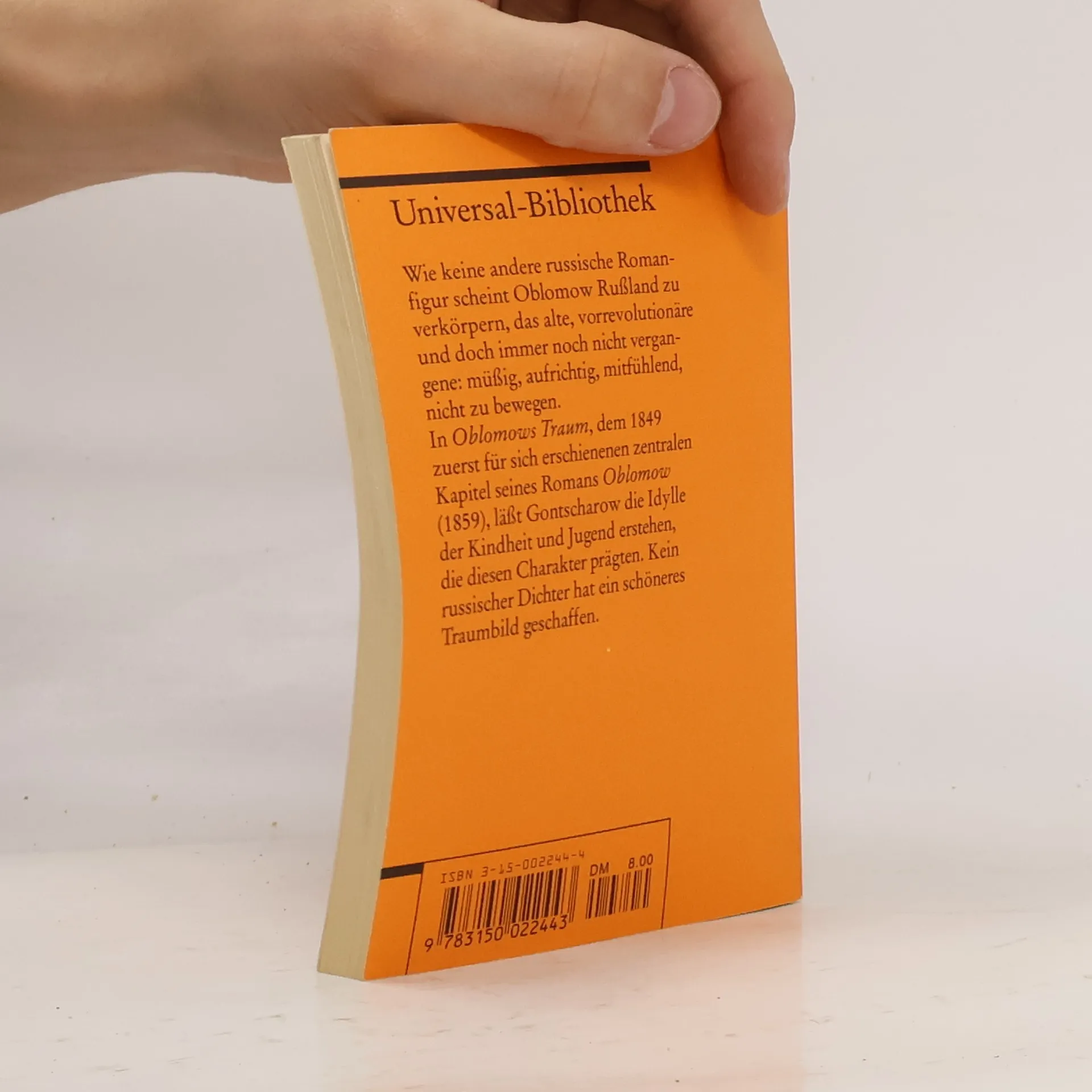 Wie keine andere russische Romanfigur scheint Oblomow Rußland zu verkörpern, als alte, vorrevolutionäre und doch immer noch nicht vergangene: müßig, aufrichtig, mitfühlend, nicht zu bewegen. In 'Oblomows Traum', dem 1849 zuerst für sich erschienenen zentralen Kapitel seines Romans 'Oblomow' (1859), läßt Gontscharow die Idylle der Kindheit und Jugend erstehen, die diesen Charakter prägten. Kein russischer Dichter hat ein schöneres Traumbild geschaffen.
