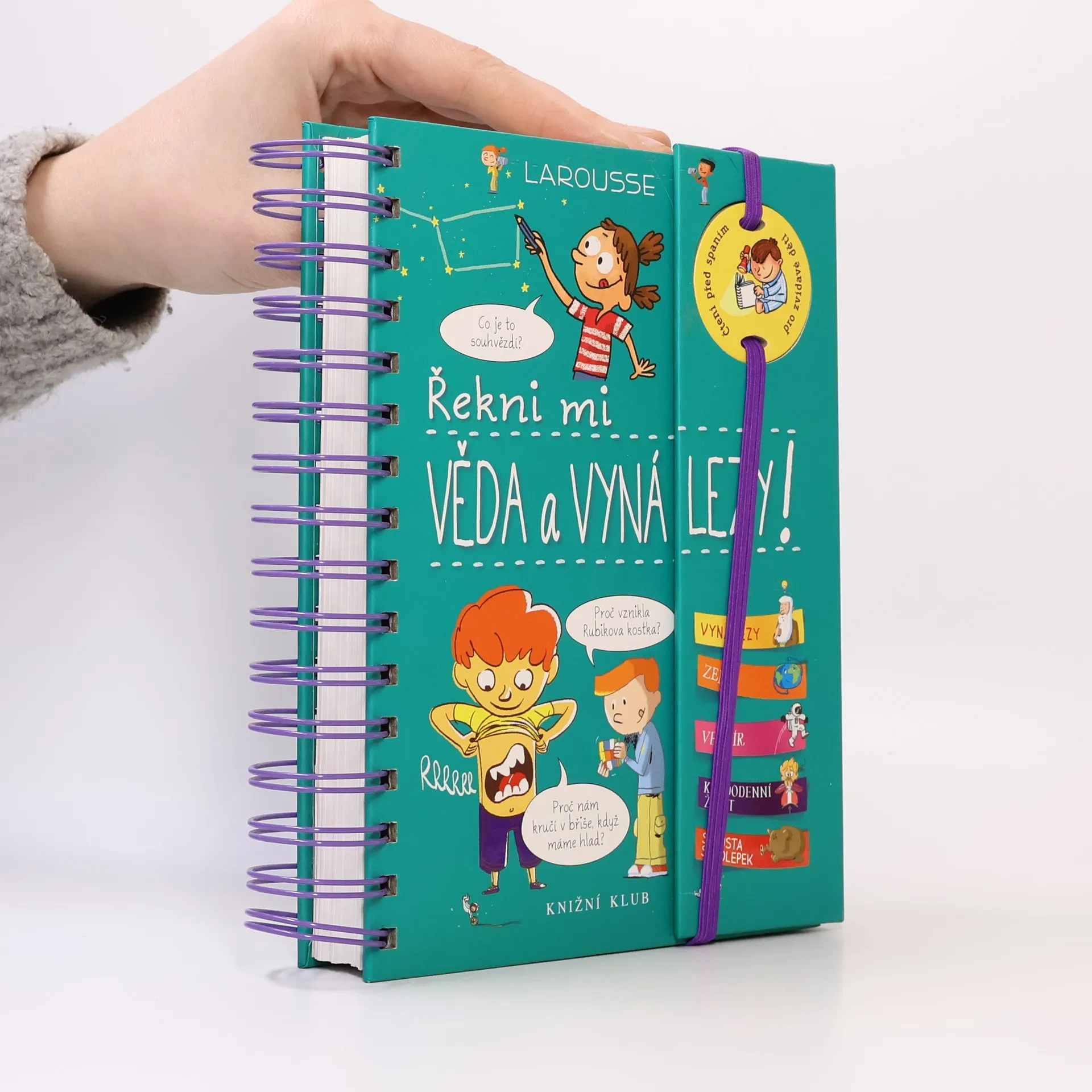 Další z oblíbených encyklopedií pro zvídavé děti z edice „Řekni mi“ se tentokrát věnuje objevům a vynálezům z různých odvětví vědy a techniky i pozoruhodným jevům kolem nás. Odpovídá na 216 přemýšlivých otázek rozdělených do kapitol Vynálezy, Země, Vesmír či Úkazy každodenního života. Knížka s praktickou spirálovou vazbou jako obvykle nabízí půvabné a vtipné ilustrace a nechybí ani tři listy se samolepkami.