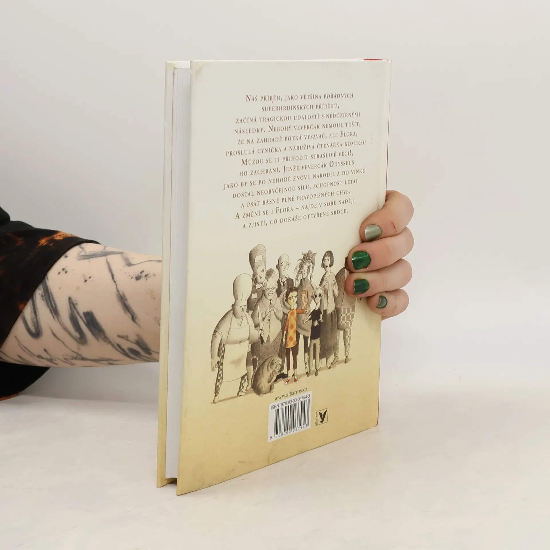 Náš příběh, jako většina pořádných superhrdinských příběhů, začíná tragickou událostí s nedozírnými následky. Nebohý veverčák nemohl tušit, že na zahradě potká vysavač, ale Flora, proslulá cynička a náruživá čtenářka komiksu Můžou se ti přihodit strašlivé věci!, ho zachrání. Jenže veverčák Odysseus jako by se po nehodě znovu narodil a do vínku dostal neobyčejnou sílu, schopnost létat a psát básně plné pravopisných chyb. A změní se i Flora – najde v sobě naději a zjistí, co dokáže otevřené srdce.