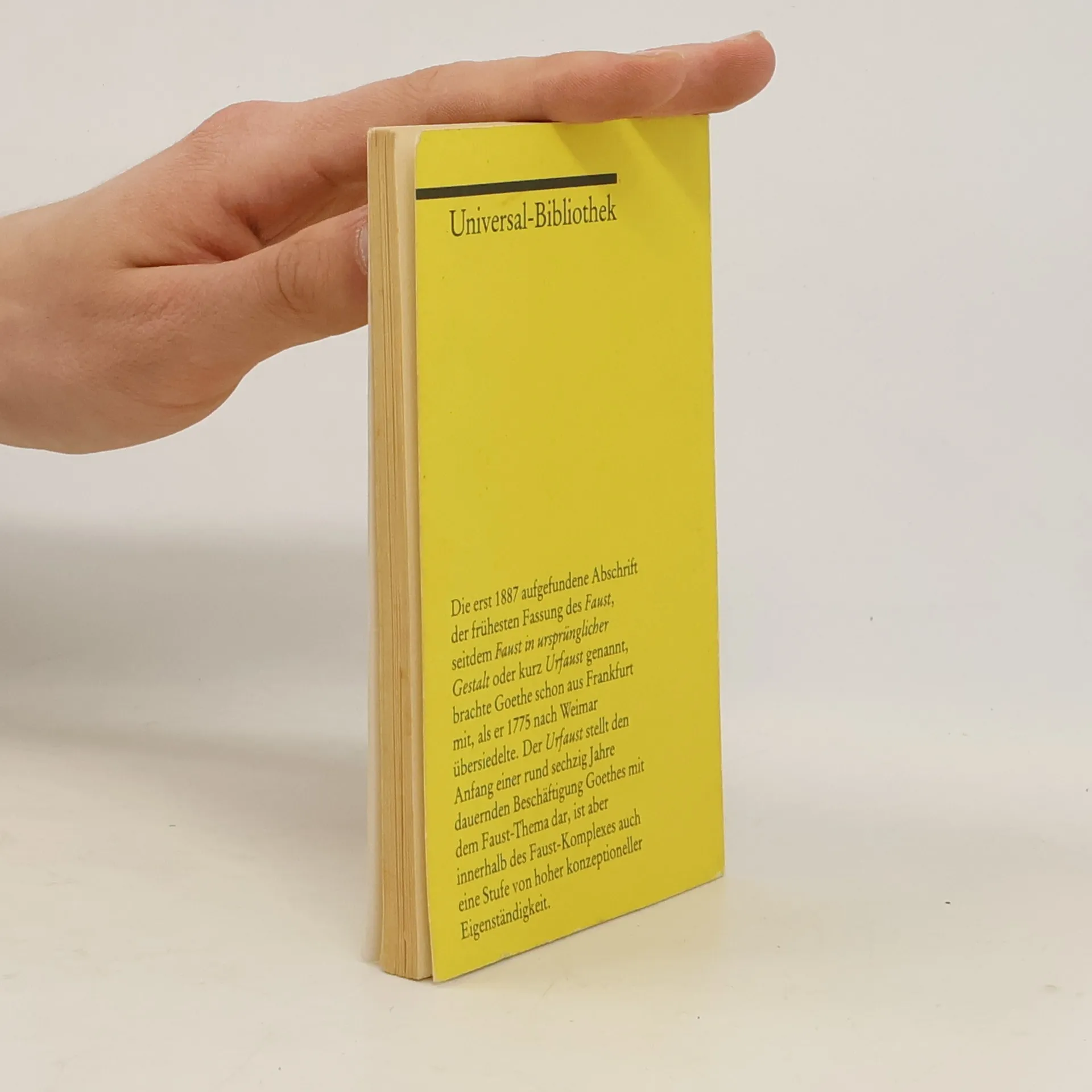 Die erst 1887 aufgefundene Abschrift der vermutlich frühesten Fassung des »Faust«, seitdem »Faust in ursprünglicher Gestalt«, kurz »Urfaust« oder »Frühere Fassung« genannt, brachte Goethe schon aus Frankfurt mit, als er 1775 nach Weimar übersiedelte. Der »Urfaust« stellt den Anfang einer rund sechzig Jahre dauernden Beschäftigung Goethes mit dem Faust-Thema dar, ist aber innerhalb des Faust-Komplexes auch eine Stufe von hoher konzeptioneller Eigenständigkeit.