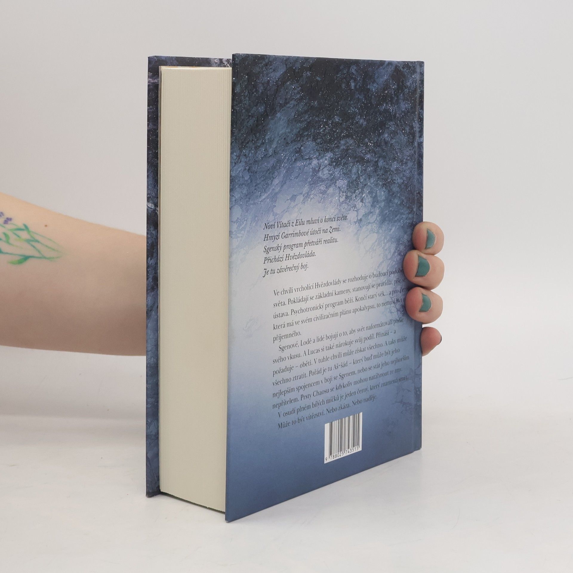 Velkolepé vyvrcholení nejobsáhlejší české sci-fi ságy Mycelium je zde. Intriky, psychotronika a krvavé oběti. Všechno míří právě sem. Tohle už je konec. Ve chvíli vrcholící Hvězdovlády se rozhoduje o budoucí podobě světa. Psychotronický program běží. Končí starý věk... a pro Zemi, která má ve svém civilizačním plánu apokalypsu, to nemusí být nic příjemného. Sgenové, Lodě a lidé bojují o to, aby svět naformátovali podle svého vkusu. A Lucas si také nárokuje svůj podíl. Přináší – a požaduje – oběti. V tuhle chvíli může získat všechno. A taky může všechno ztratit. Aš~šád může být jeho nejlepším spojencem v boji se Sgenem, nebo se stát jeho nejhorším nepřítelem. Prsty Chaosu se kdykoliv mohou natáhnout ze tmy. V osudí plném bílých míčků je jeden černý, který znamená smrt. Může to být vítězství. Nebo zkáza. Nebo naděje.
